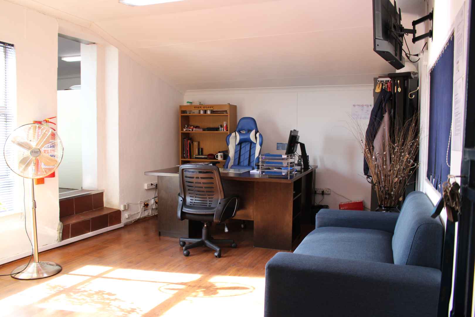 The property boasts four spacious workshops, each equipped with its own office, kitchen, and restroom facilities, providing a fully functional and self-contained environment for diverse business operations. Additionally, there is a well-appointed warehouse featuring ample office space, a modern kitchen, and contemporary bathrooms, making it ideal for storage and distribution purposes.