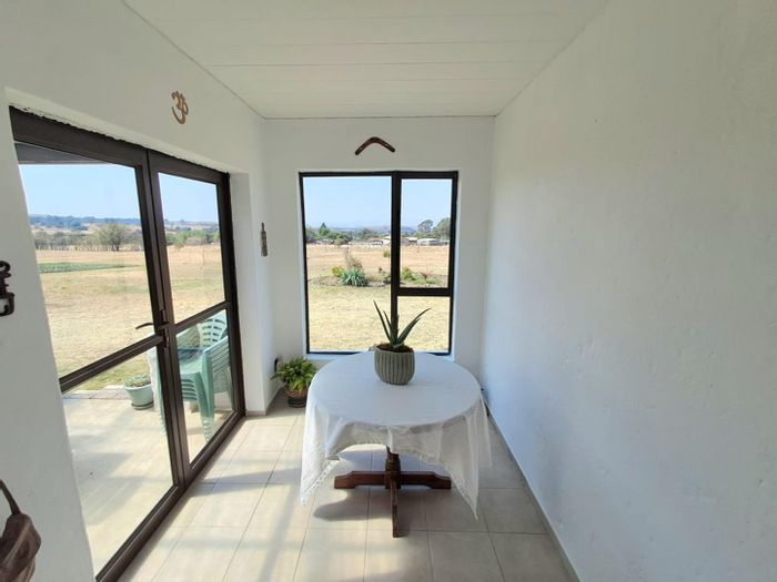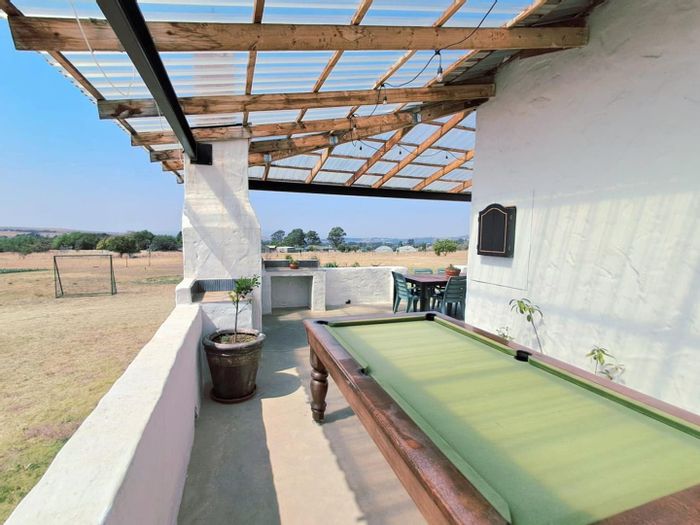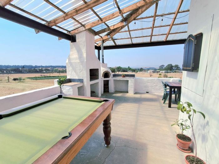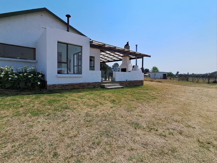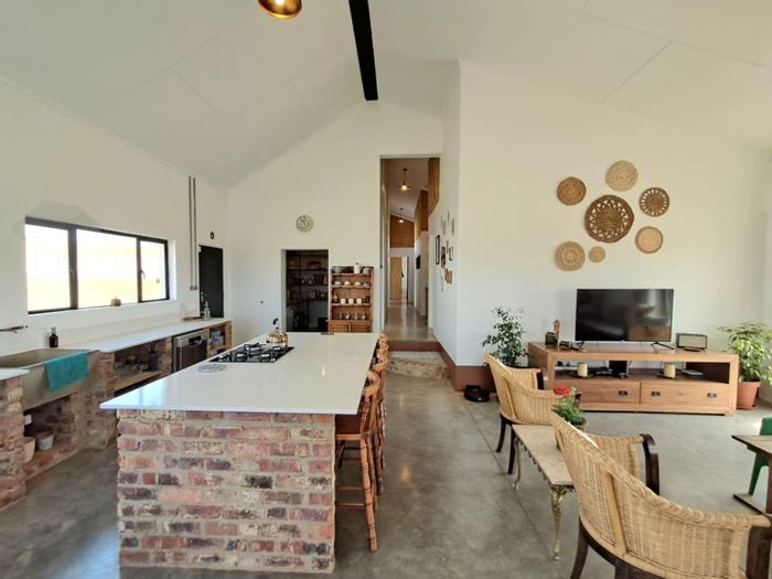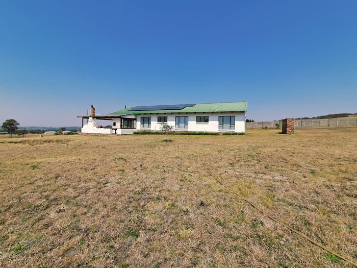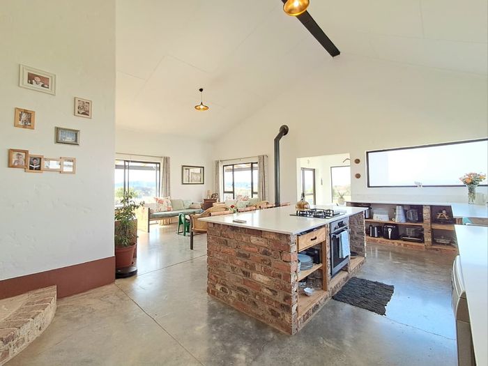 Rural hilltop retreat with panoramic rolling-hill views, solar-powered autonomy and 3,600L/hr borehole. Entertain on covered patio with built-in braai and pizza oven; 3 beds, 2 baths, triple garage.