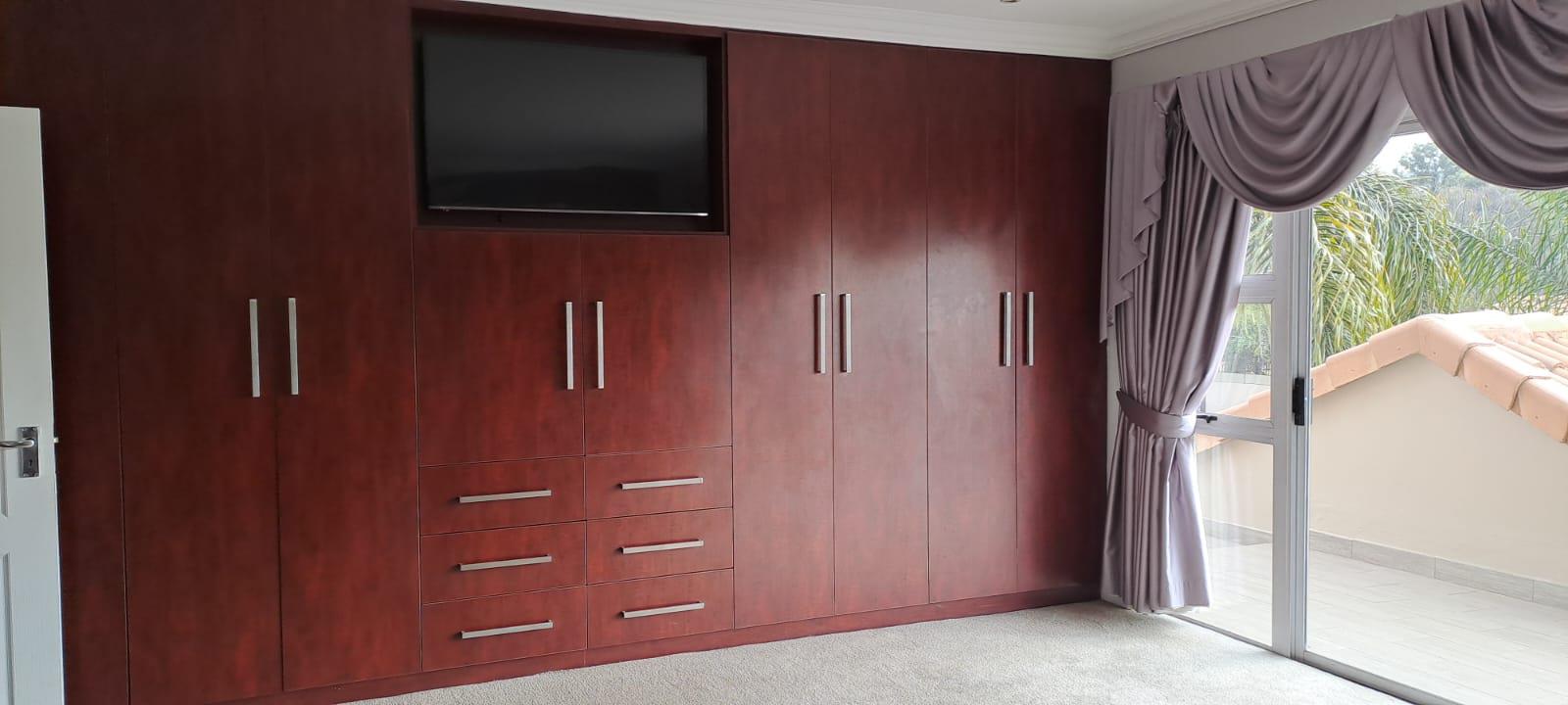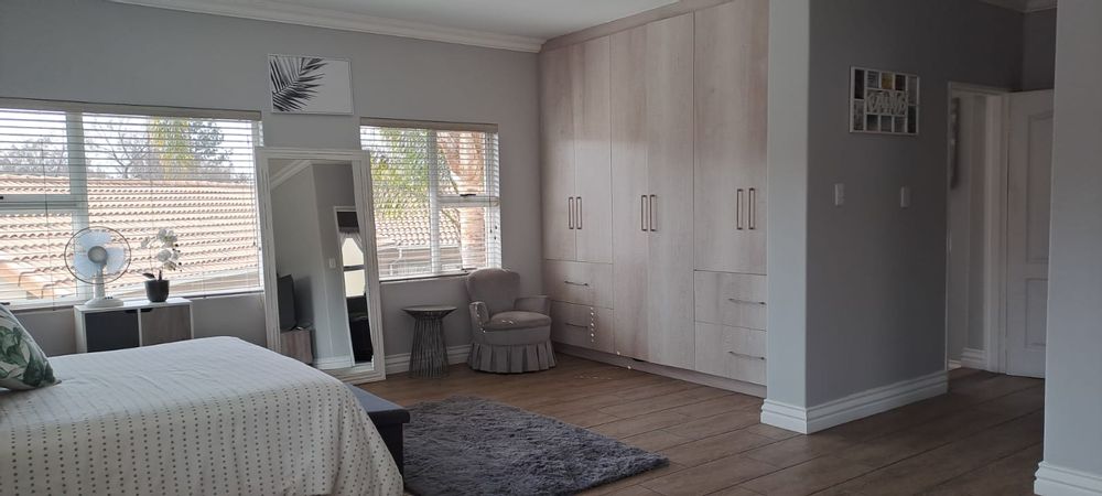 This stunning home boasts six bedrooms, each with built-in cupboards. The luxurious main suite is a true retreat, complete with air conditioning, a private balcony overlooking the garden, and a full ensuite bathroom.