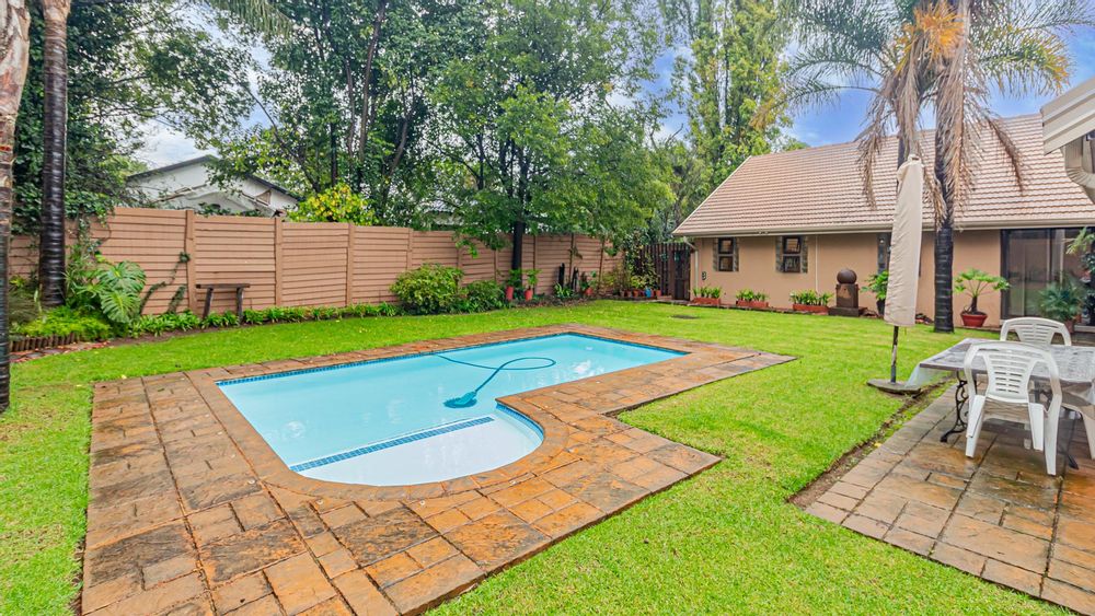 Practicality meets luxury with ample parking options, including a double tandem garage, two covered parking bays, and abundant open parking space. Additional features include a convenient storeroom, staff quarters, high perimeter walls, wireless beams, and a comprehensive alarm system for your peace of mind.