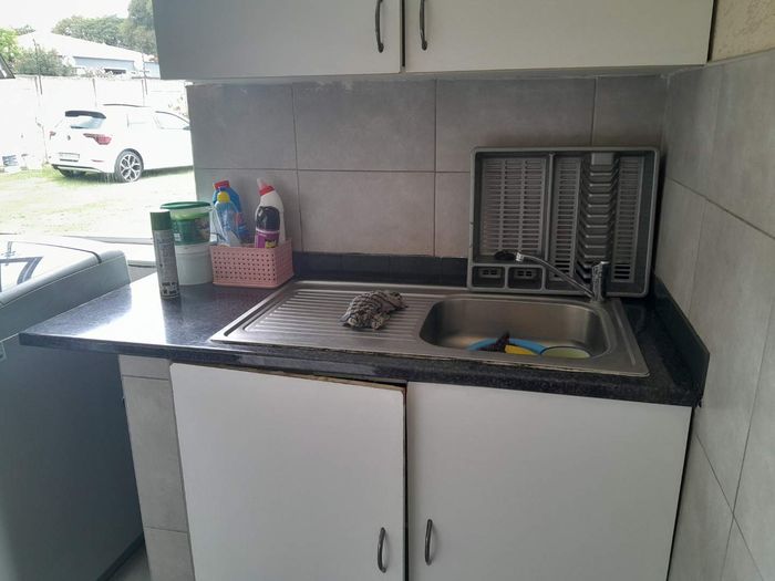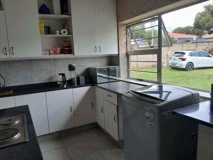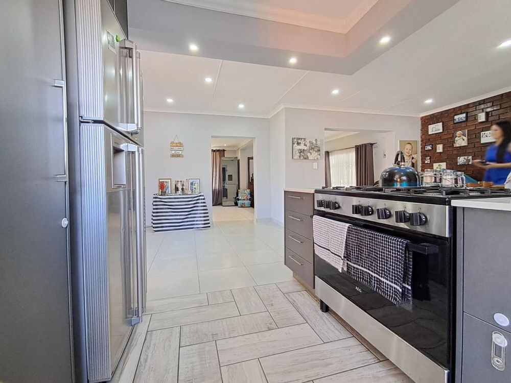 The fully fitted kitchen is a culinary enthusiast's paradise, complete with a gas stove and an integrated laundry area for added convenience. In the lounge, you can cozy up by the fireplace or entertain guests with flair under the covered entertainment area, featuring a built-in braai.