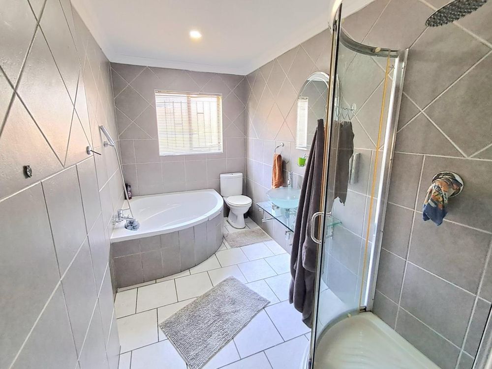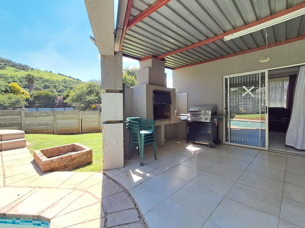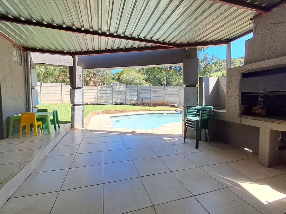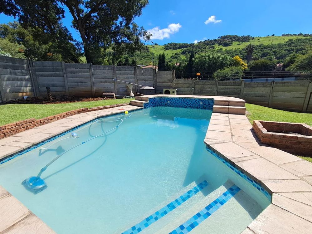Relaxation awaits in the sparkling swimming pool, equipped with a heating pump for year-round enjoyment. Your peace of mind is assured with top-notch security measures, including 8 CCTV cameras, burglar bars, an alarm system, automated access gates, and an electric fence.