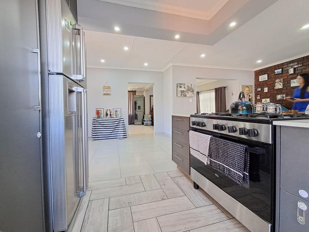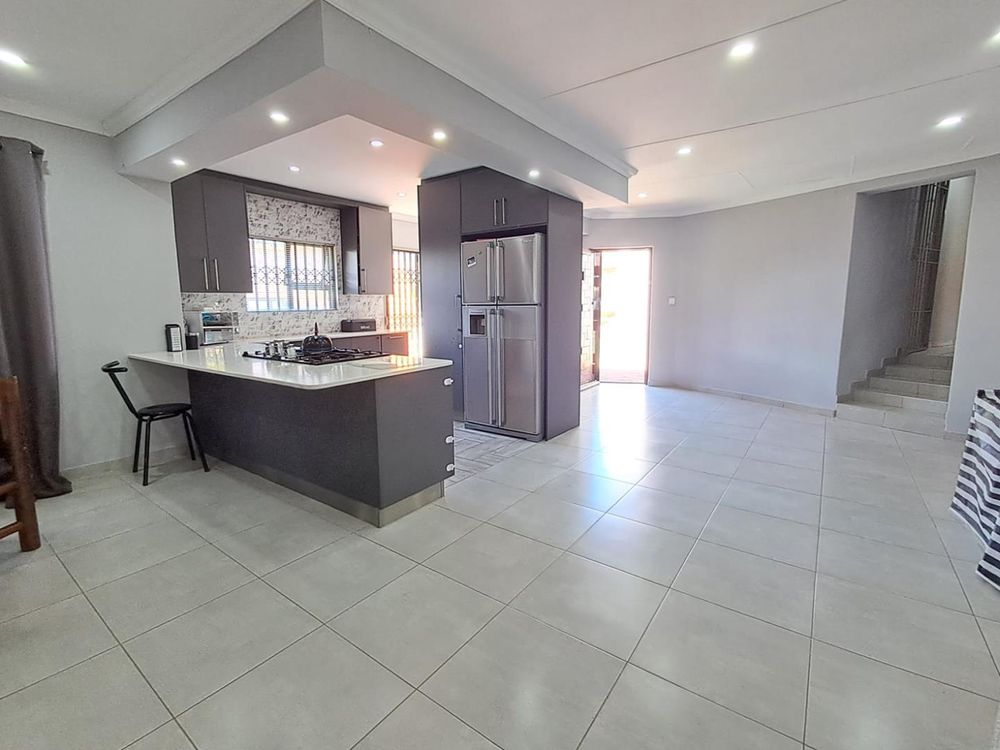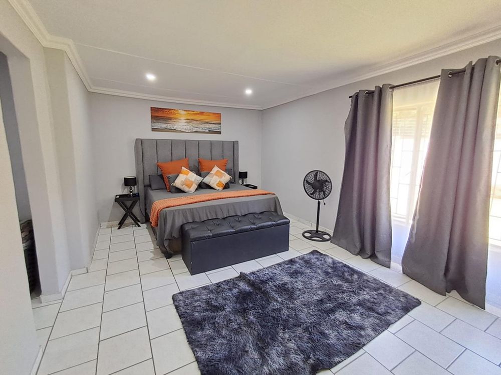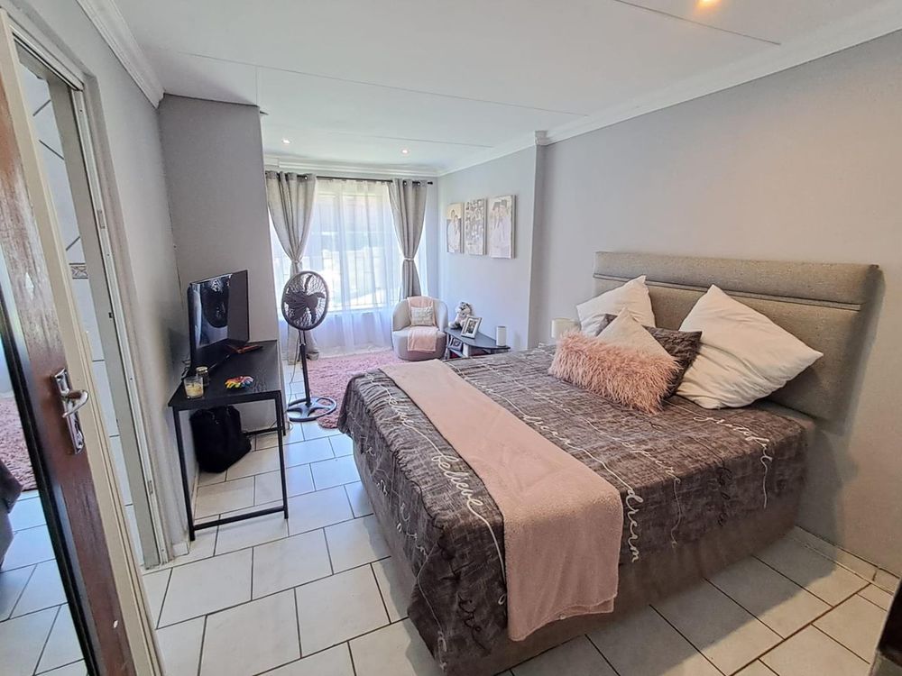 This stunning residence situated in close proximity to the Mosque features three beautifully appointed bedrooms, two of which include built-in cupboards and elegant tiling. The expansive main bedroom offers new owners the opportunity to customize it with their choice of cupboards, providing a personal touch to your sanctuary.