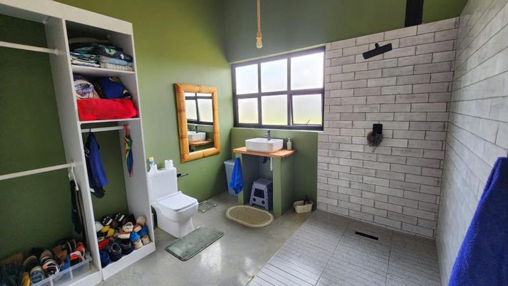 The home is completely off-grid, powered by an 8kW Sunsynk inverter, 20kW Volta batteries, and 14x 550W solar panels. The borehole with a booster pump ensures a reliable water supply, stored in 10,000L JoJo tanks. Three gas geysers provide efficient hot water, while the pool includes 2 additional heating panels for extended use.