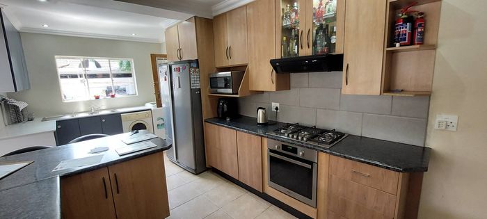 Effortless family living and entertaining in a peaceful suburban setting, with a thatched lapa and built-in braai overlooking a sunny pool; four bedrooms, three bathrooms and double carport.