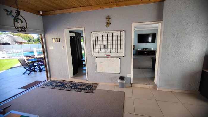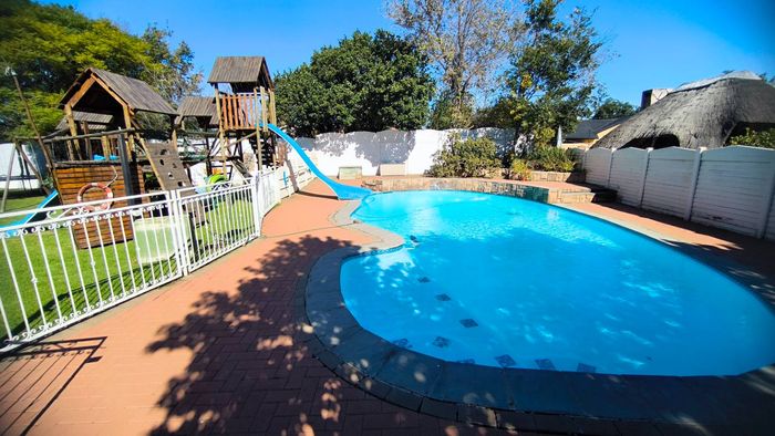 Wake up to Vaal Dam sunrises on your own 100m waterfront slice, enjoy sundowners by the pool and built-in bar — four-bedroom main house plus one-bedroom cottage.