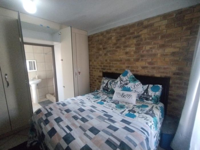 This cottage boasts 2 bathrooms, one of which is an en-suite with a convenient shower. The bedrooms each featuring built-in cupboards providing ample storage space. Enjoy the luxury of a private balcony. excluding Water, Pre Paid lights and Garden Service