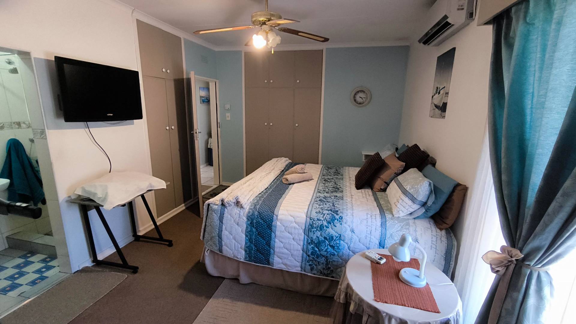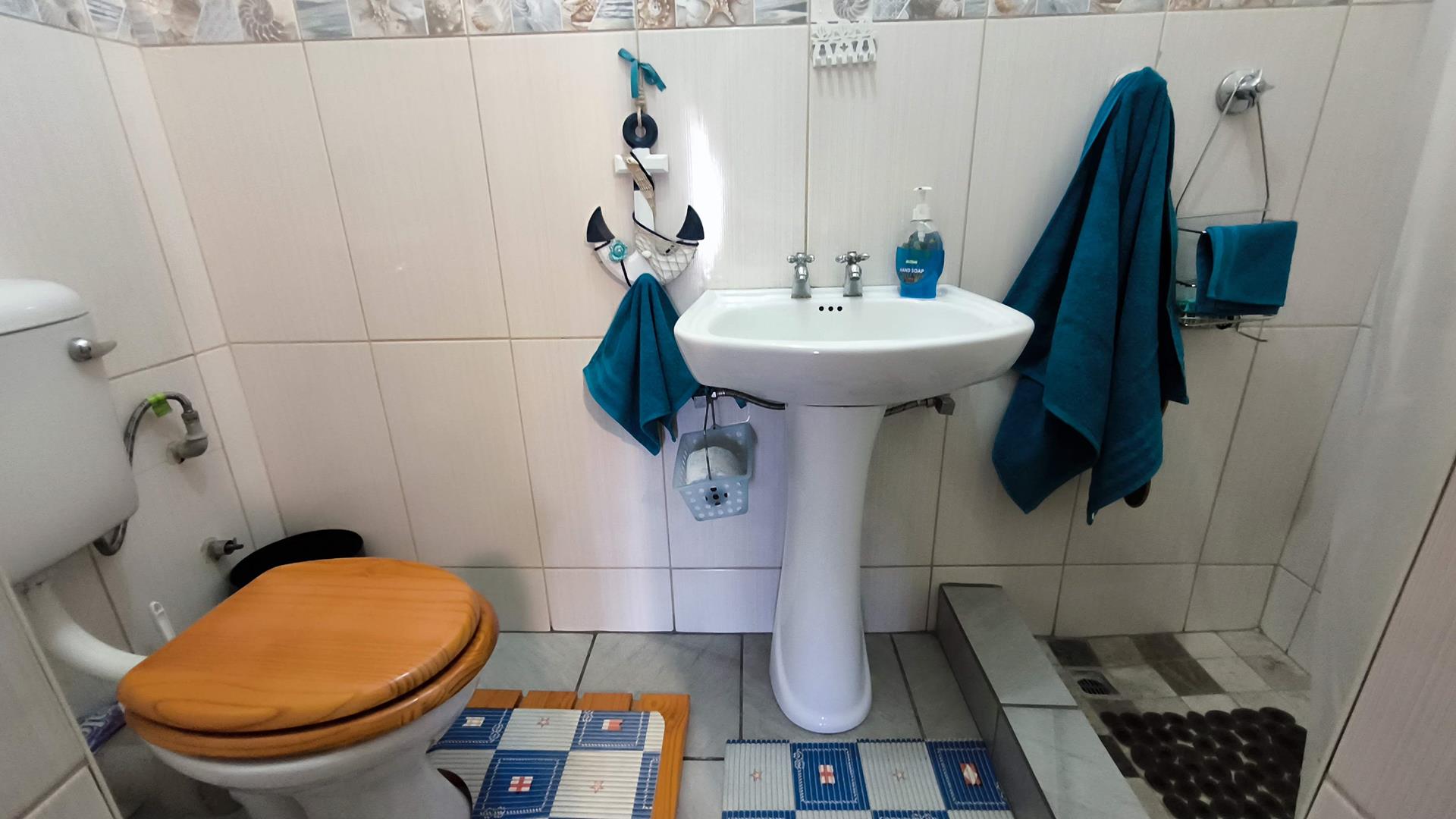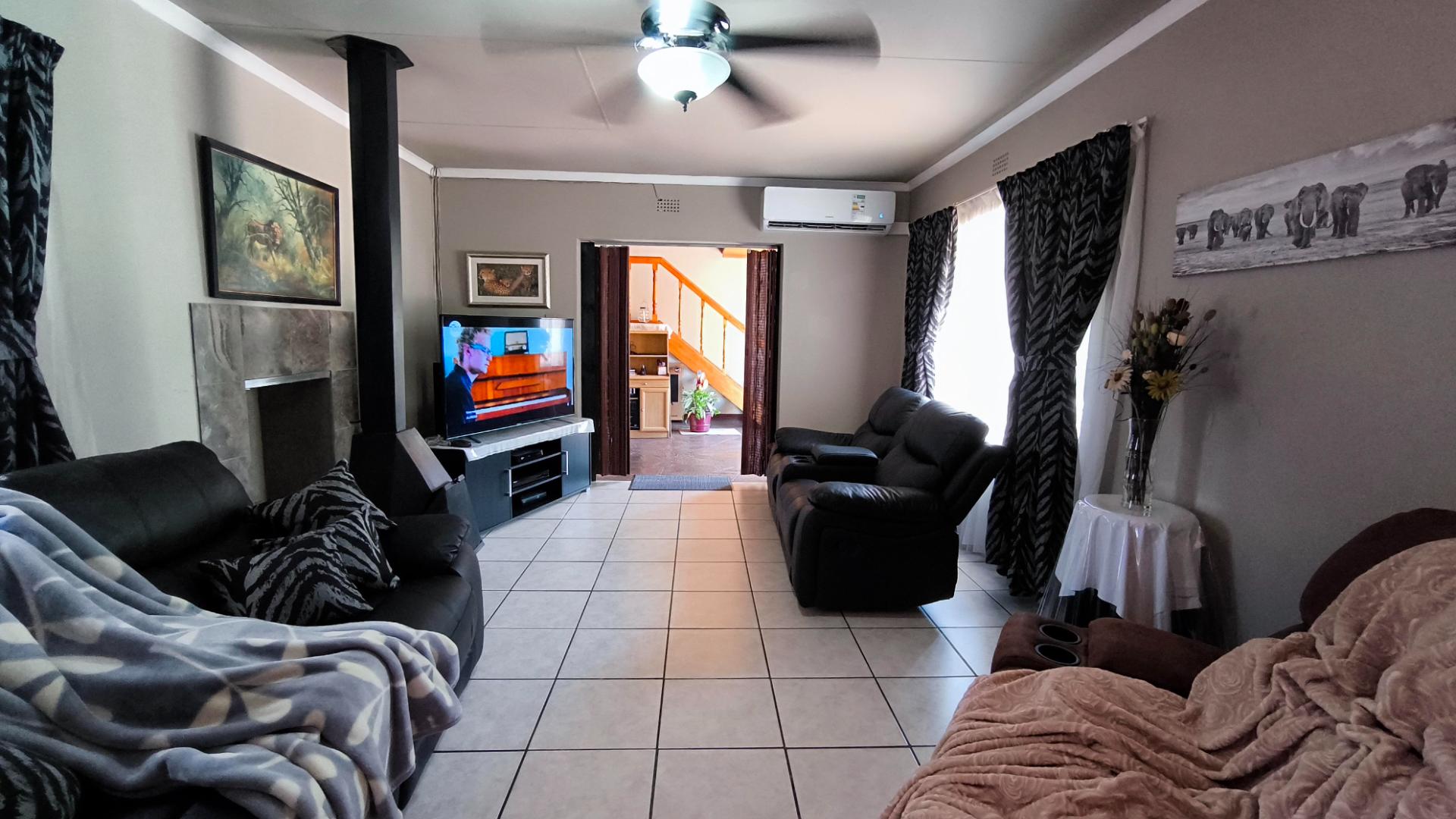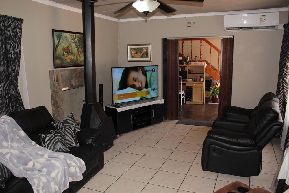 The main house boasts 4 generously-sized bedrooms, (3 beds have en-suite bathrooms!) and 4 bathrooms to accommodate all your needs. Aircons in 2 bedrooms - (12 000 btu each) The large lounge area, with a built-in jetmaster & air-con (18 000 btu) is a true highlight, opening up to a spectacular rock-art themed pool and braai area with jacuzzi.. With 3 thatched entertainment rooms, this outdoor space is perfect for hosting unforgettable gatherings with family and friends.