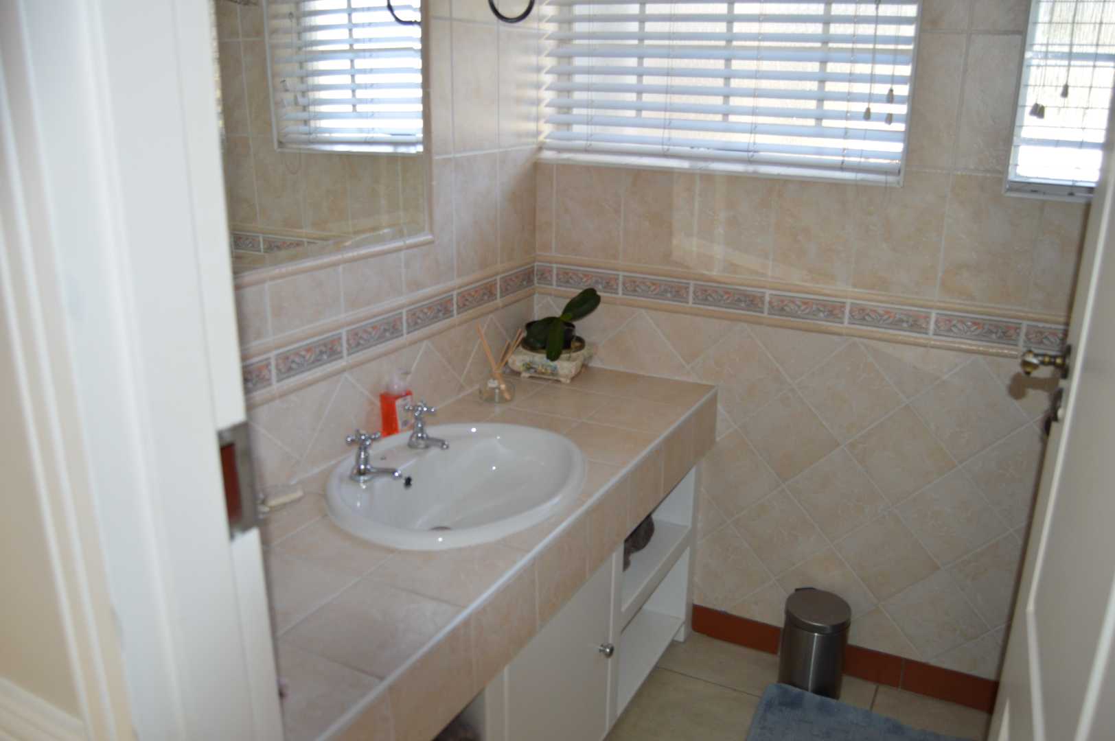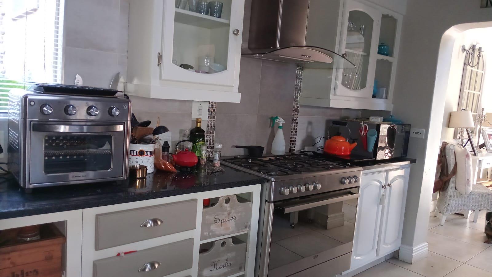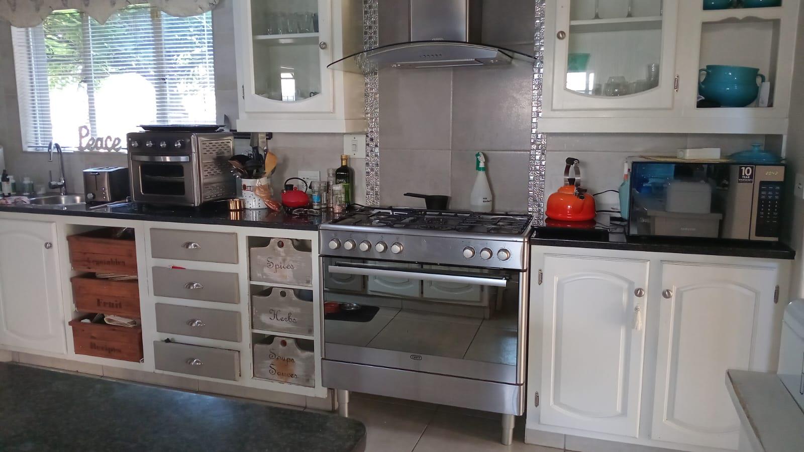 Step inside the main house to find a spacious entrance hall with skylights and double-volume ceilings. The open-plan living areas, complete with a wood fireplace, create a cozy atmosphere during the colder months. The modern kitchen is a chef's delight, featuring granite surfaces, a breakfast nook, ample cupboard space, and modern appliances including a gas hob and extractor, along with a scullery. There is a gas geyser serving the kitchen only. This culinary space flows seamlessly into the dining and lounge areas, leading to an entertainment patio by the inviting pool—ideal for hosting guests or enjoying family time.