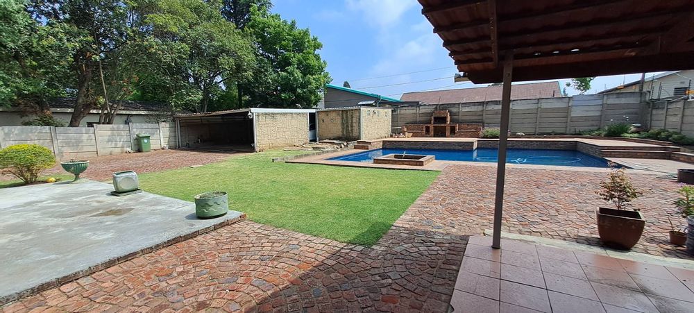 Step outside to discover a covered patio and built-in braai (BBQ) area, perfect for hosting gatherings or simply unwinding in your private outdoor oasis. The sparkling swimming pool invites you to take a refreshing dip on warm days.