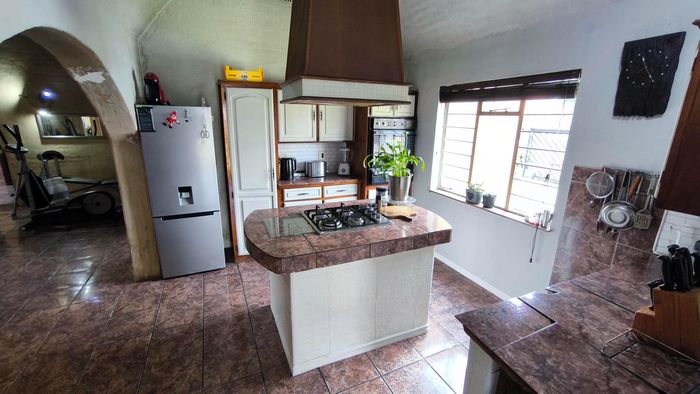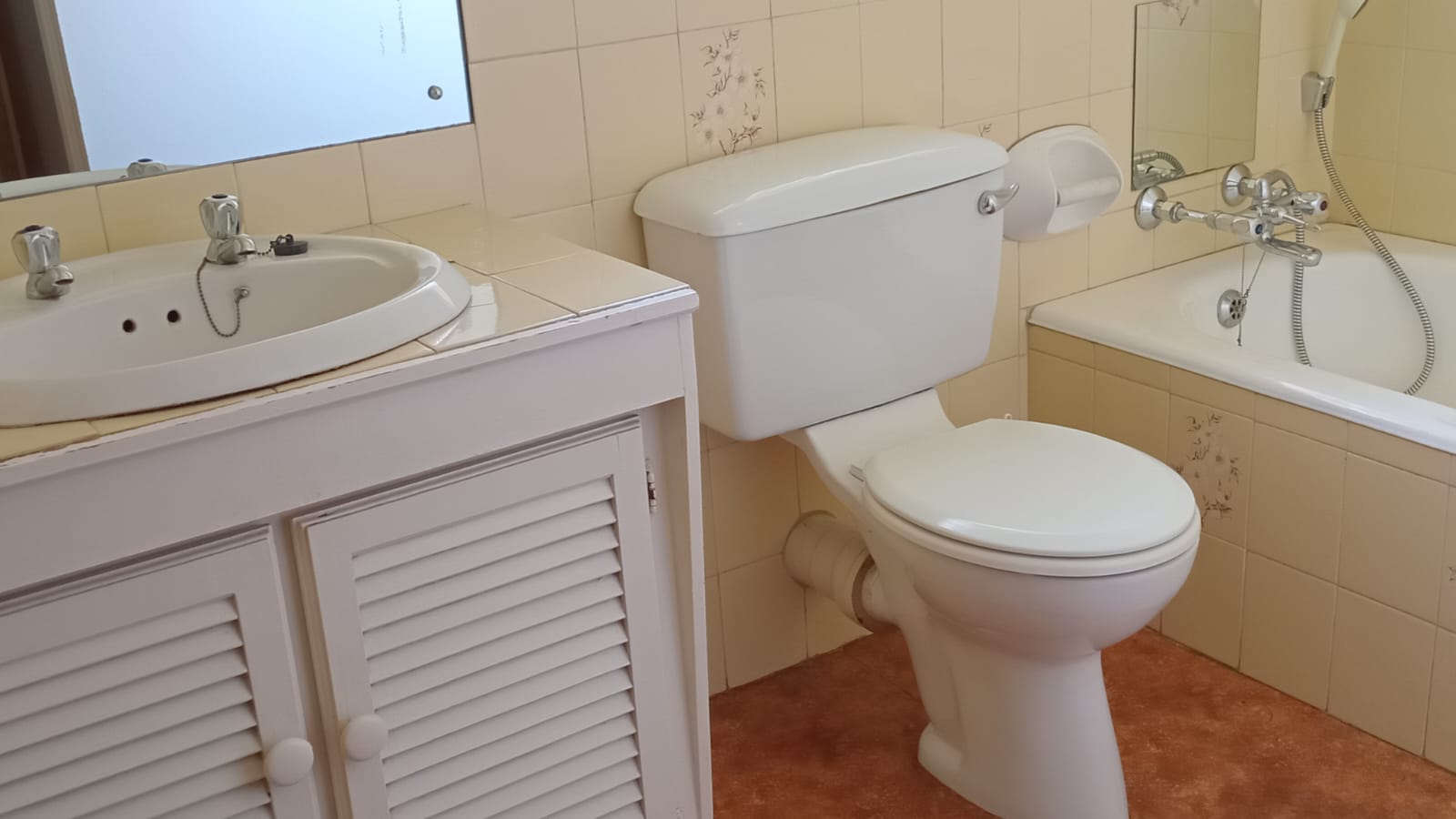 This lovely home features three well-sized bedrooms, each equipped with built-in cupboards and cozy carpeted floors. The master bedroom is a true retreat, offering plenty of cupboard space and a full en-suite bathroom complete with a bath, shower, toilet, and basin. The second bathroom provides convenience with its bath, toilet, and basin. For added efficiency, the house is fitted with a gas geyser.