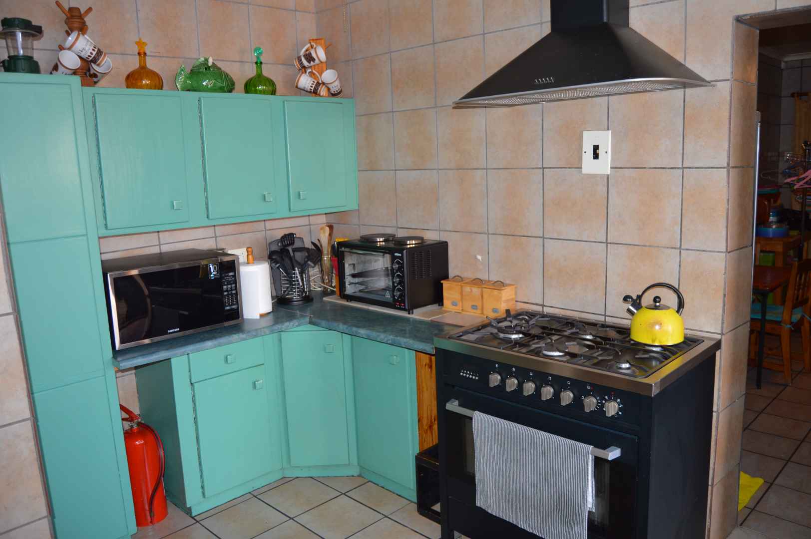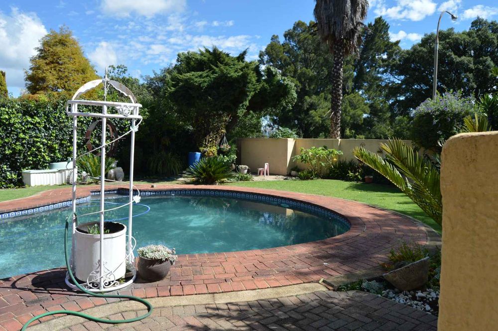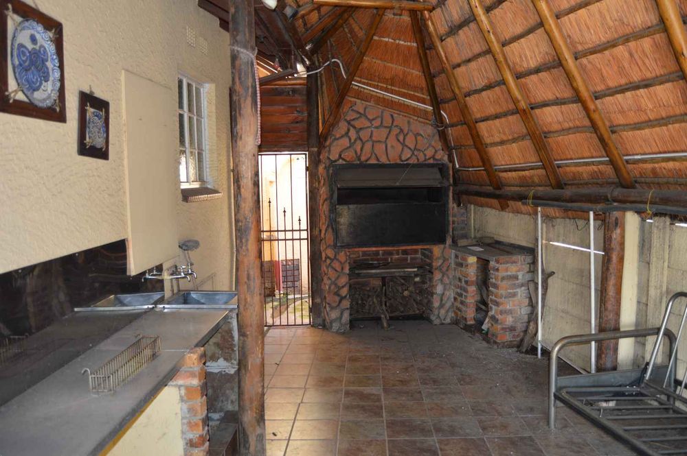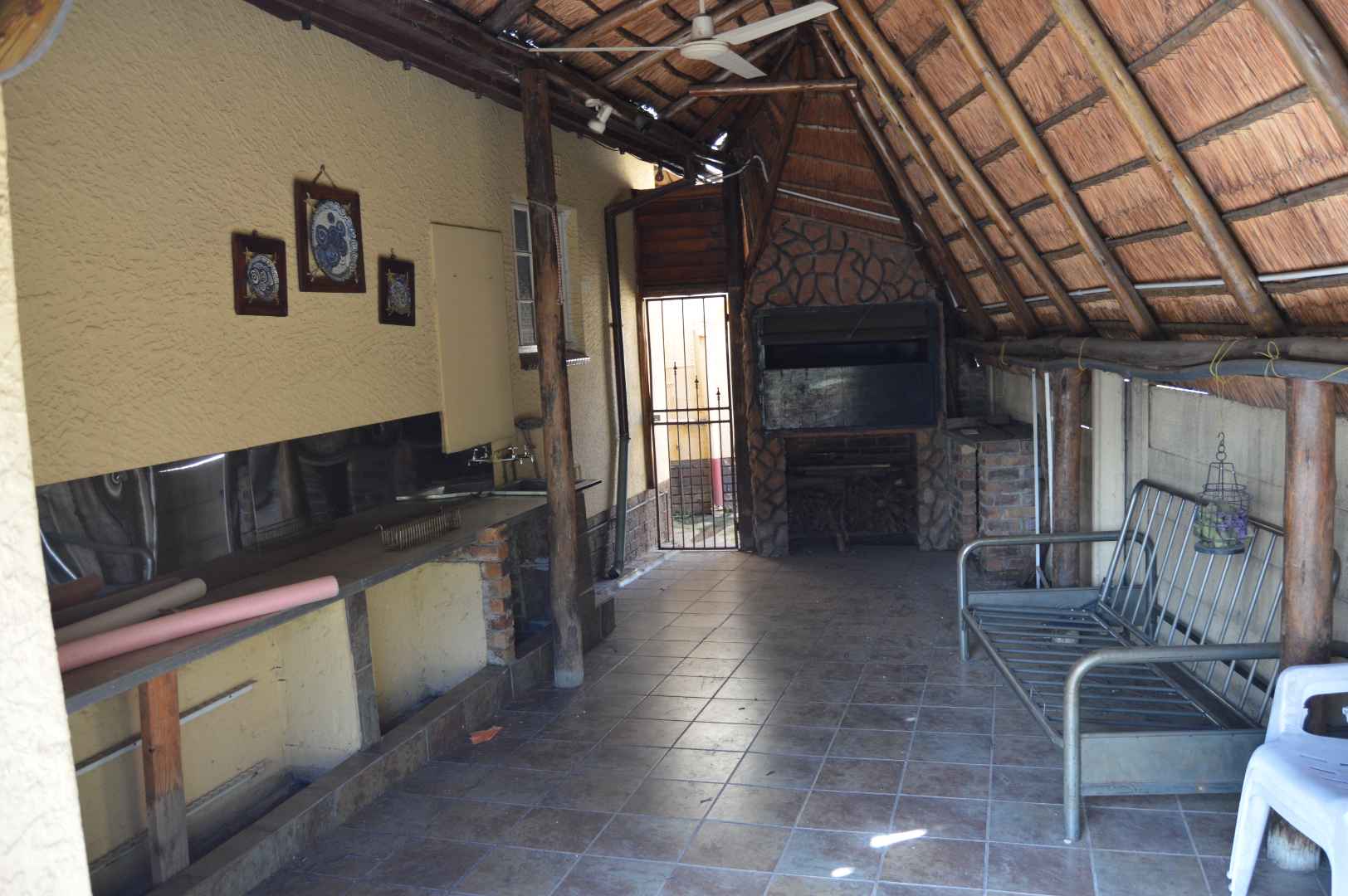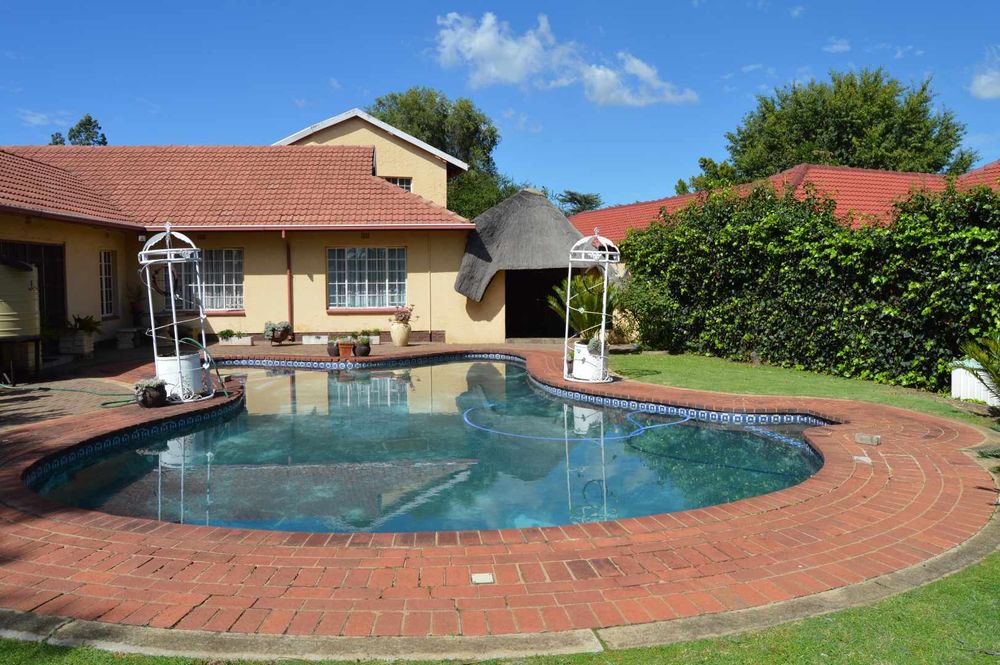 The rest of this lovely family home consists of three generous bedrooms, offering plenty of space for the whole family. The two well-appointed bathrooms include a private en-suite for the main bedroom, ensuring comfort and privacy. For outdoor enthusiasts, the property boasts a swimming pool and a thatch area with a built-in braai, perfect for entertaining guests or enjoying family gatherings.