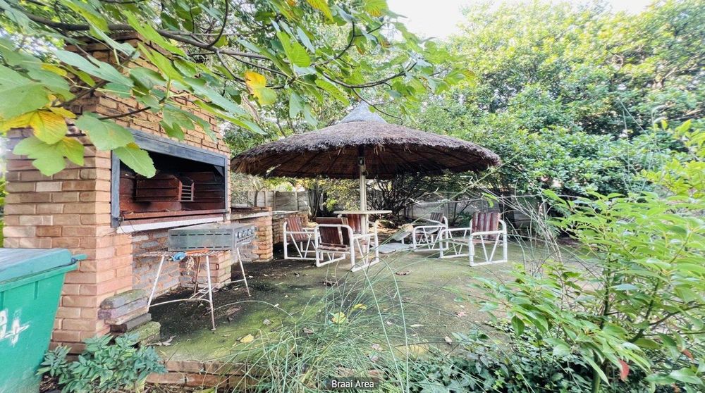 Outdoor living is a breeze with a built-in braai and a charming patio adorned with a thatched roof. This outdoor haven is ideal for alfresco dining, summer barbecues, or simply unwinding while enjoying the serene surroundings.