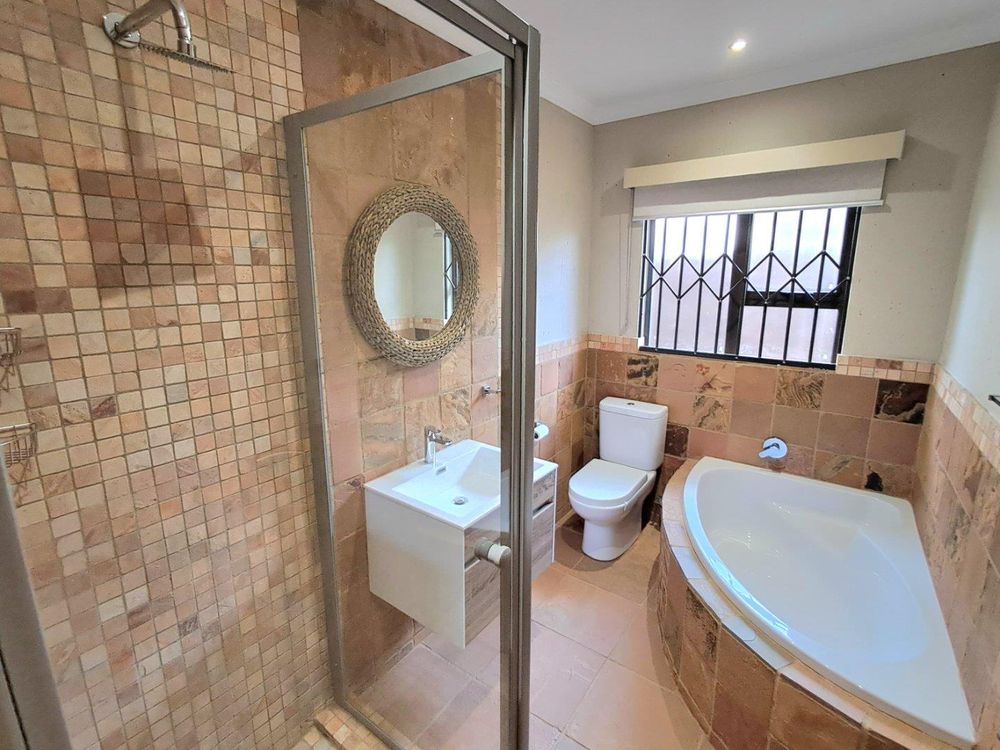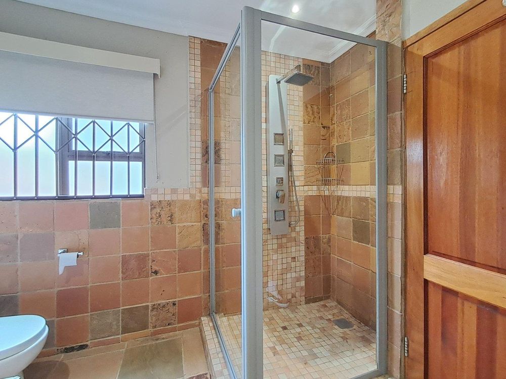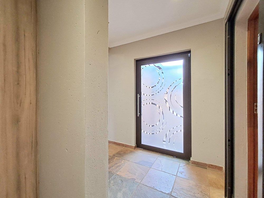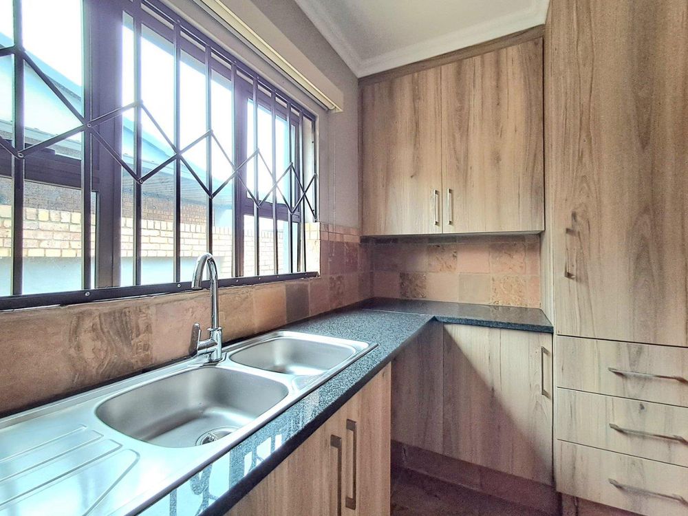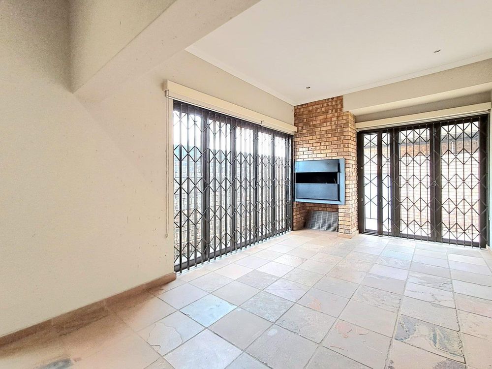 Additional features include strategically placed skylights in the kitchen and lounge area, a solar geyser for energy efficiency, and Trellidors along with comprehensive security measures throughout the property.