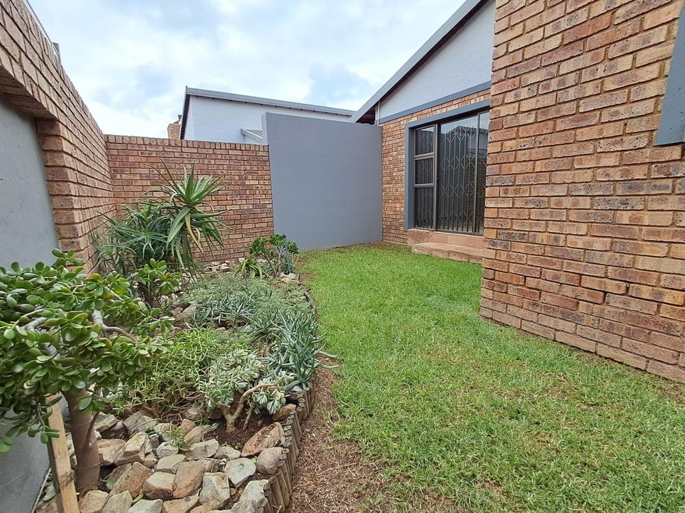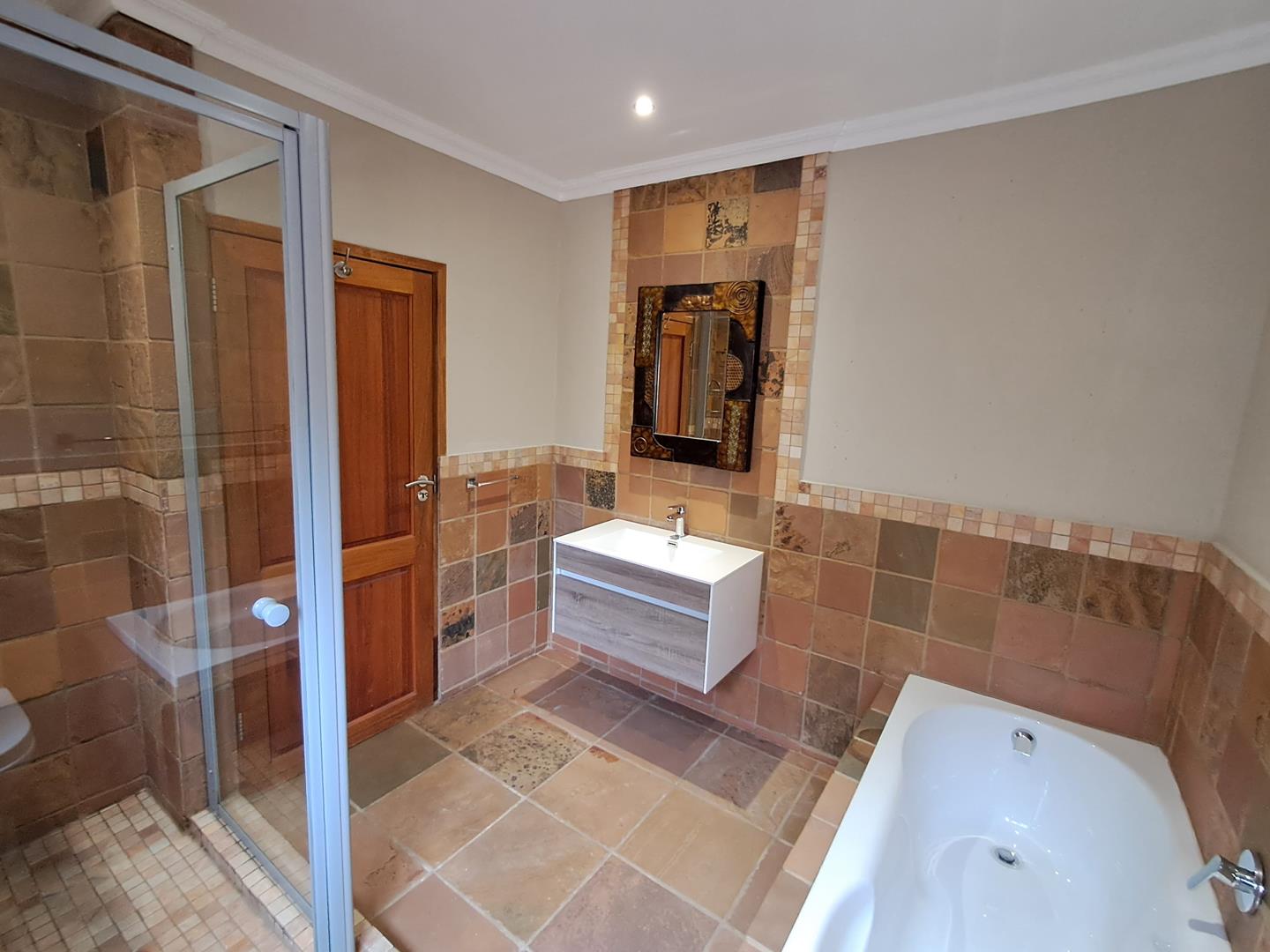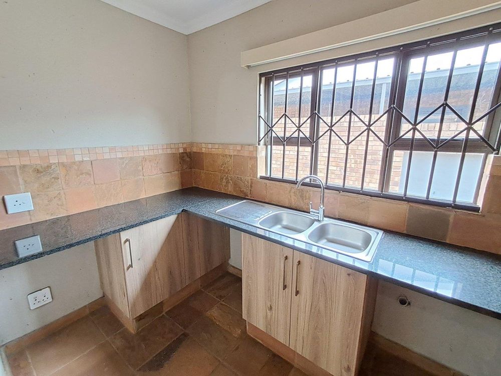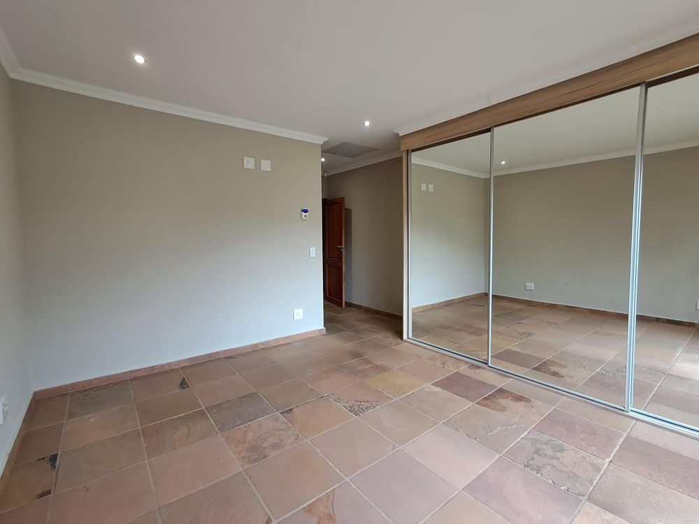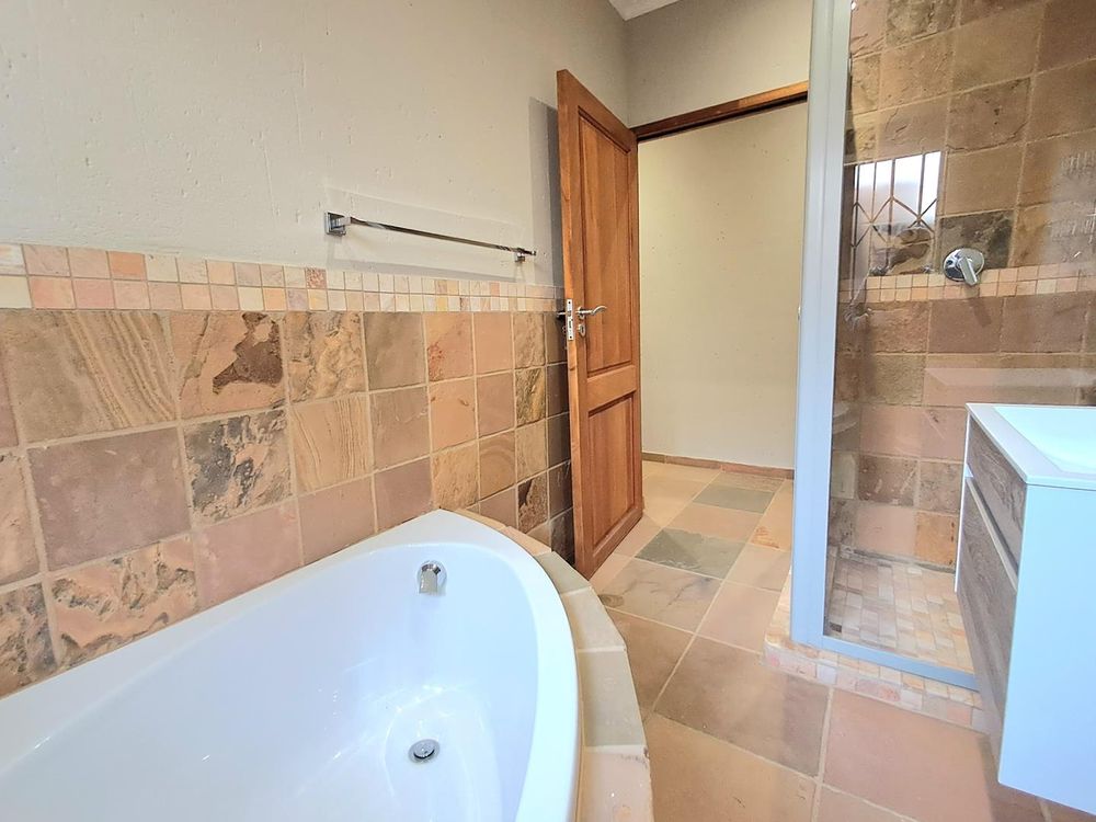 Additional features include strategically placed skylights in the kitchen and lounge area, a solar geyser for energy efficiency, and Trellidors along with comprehensive security measures throughout the property.