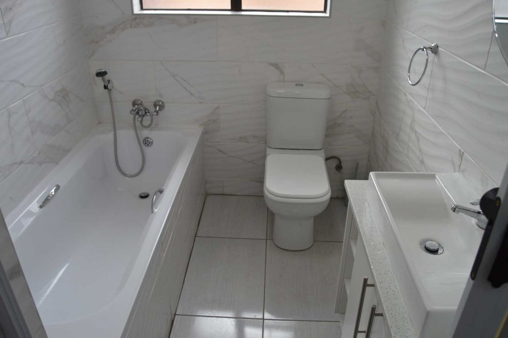 The property boasts 3 well-sized bedrooms, each equipped with built-in cupboards and modern tiles, offering both style and functionality. The 2 thoughtfully designed bathrooms include a luxurious main en suite, featuring a bath, basin, and toilet, while the common bathroom provides a shower, basin, and toilet for added convenience.