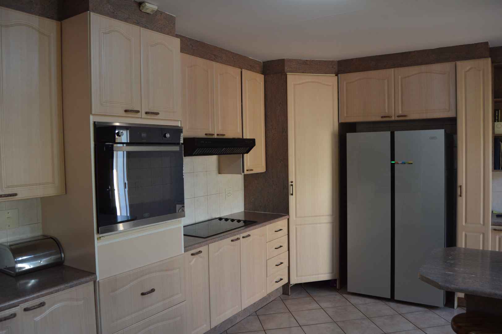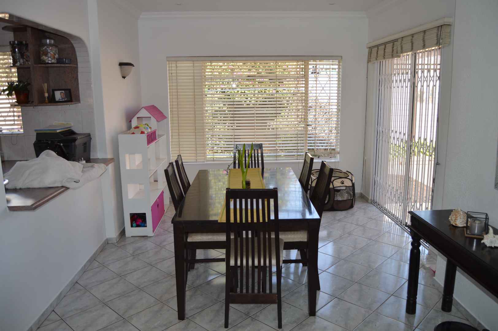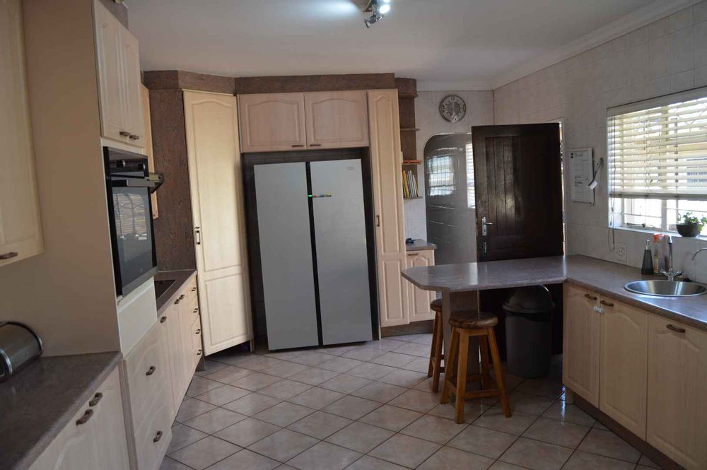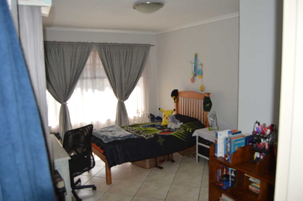 The kitchen is both spacious and modern, equipped with ample cupboard space, a pantry cupboard, a breakfast nook, and a separate scullery and dining room. The rest of the house consists of four generous-sized bedrooms and two bathrooms, including an en-suite in the main bedroom with a walk-in cupboard. For your convenience, there is a double garage and a carport that can accommodate up to three vehicles. Both the house and the flat benefit from pre-paid electricity.