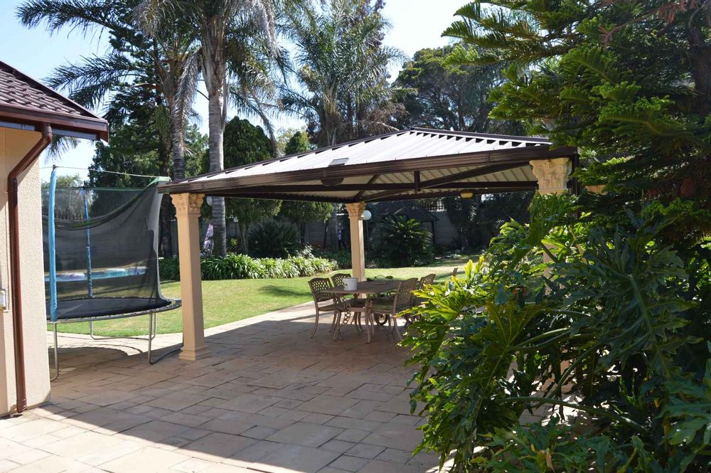 Step inside the main house to experience a welcoming and expansive lounge, perfect for family gatherings or entertaining guests. The sunny family room seamlessly opens up to a beautifully maintained garden, featuring a charming thatched area that overlooks a solar-heated pool. This serene setting is ideal for weekend gatherings or quiet outdoor moments. A lovely undercover paved gazebo located in the front garden provides an extra relaxation spot, complemented by a tranquil koi pond.