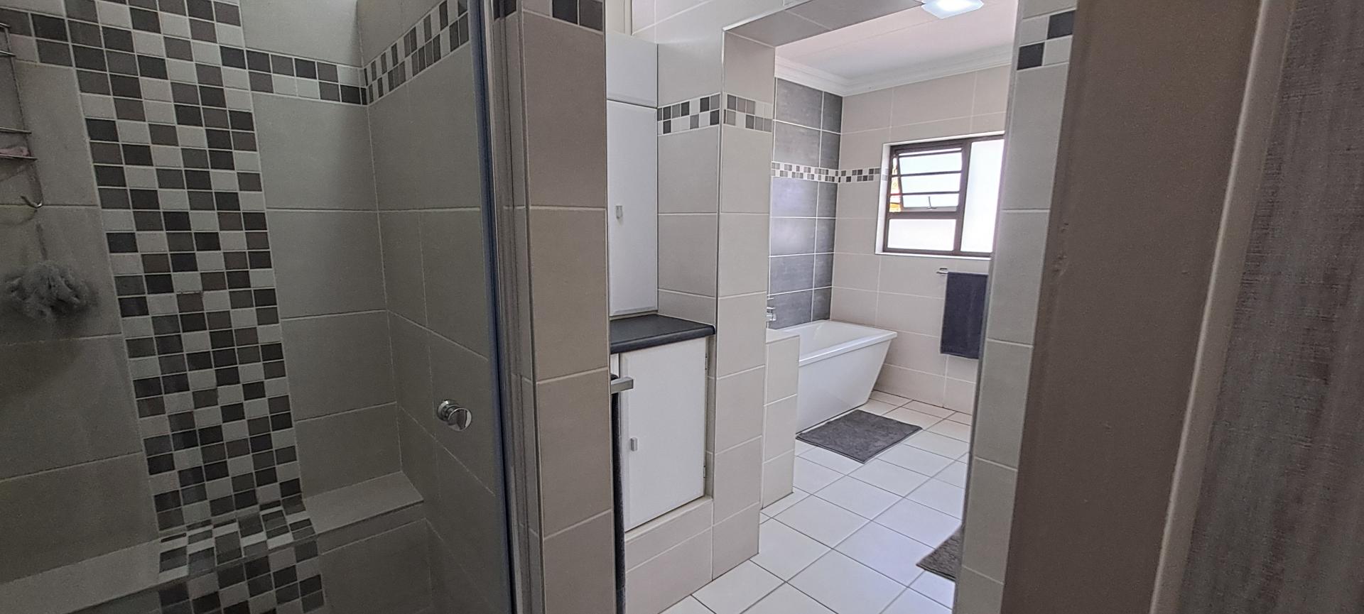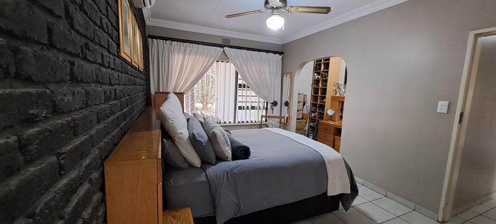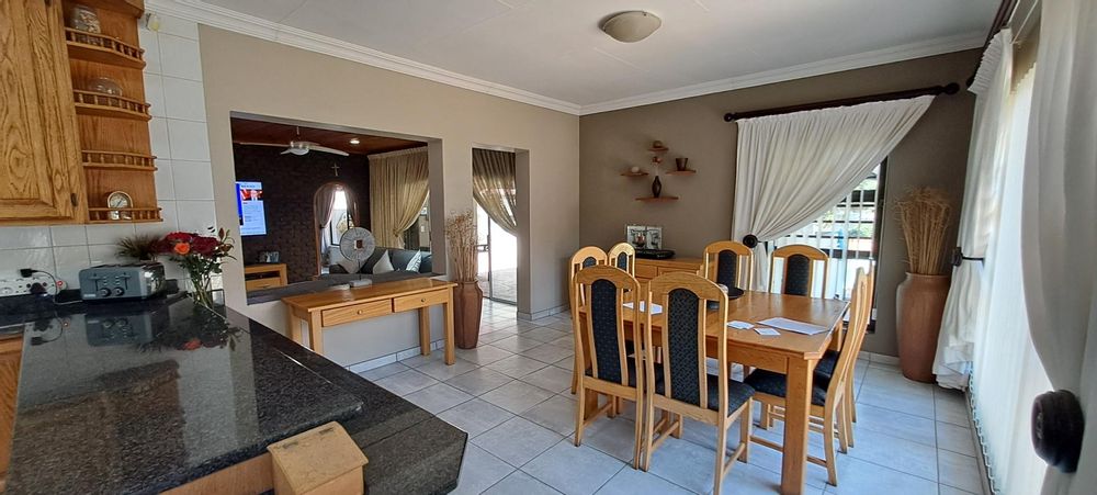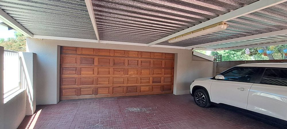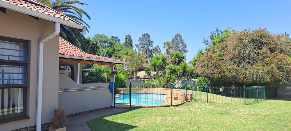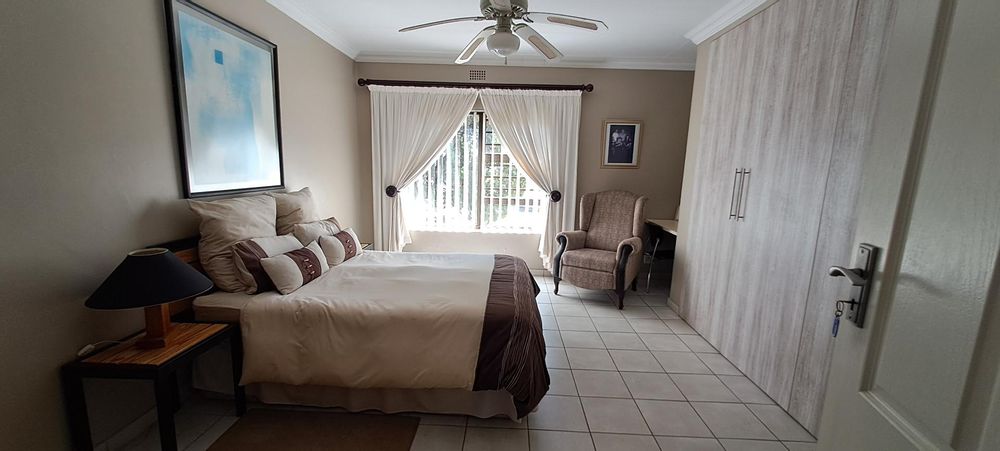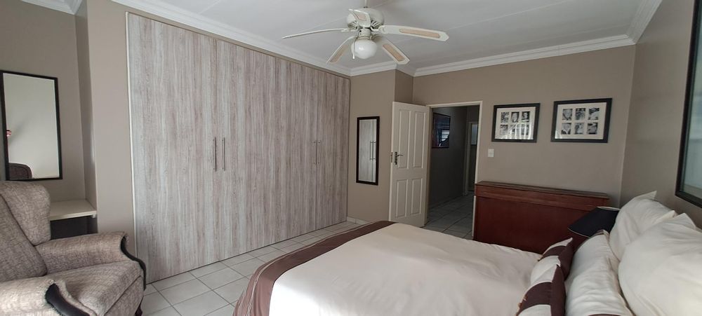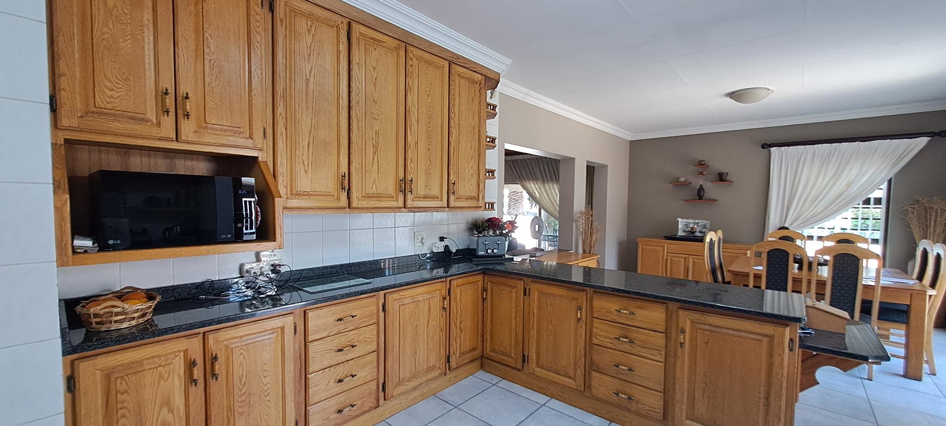 The stunning family room is designed for comfort and entertainment, leading onto the entertainment area with views of the manicured garden and sparkling pool. A solid oak-fitted bar adds a touch of sophistication. The family room opens onto a large covered patio with a built-in Braai, perfect for alfresco dining.