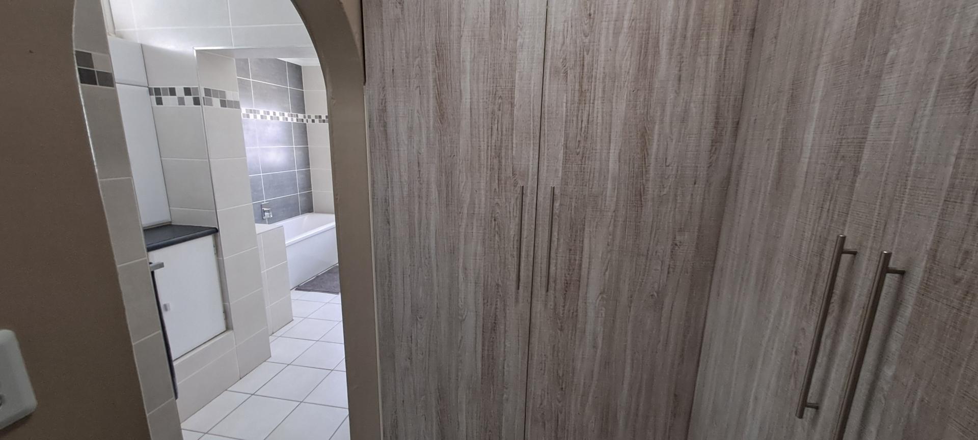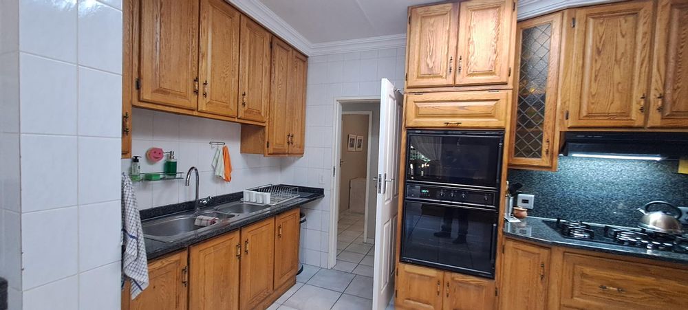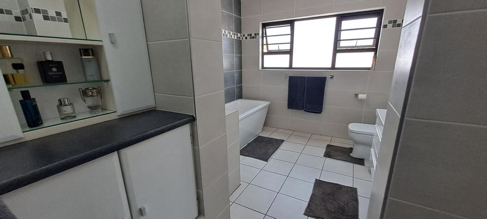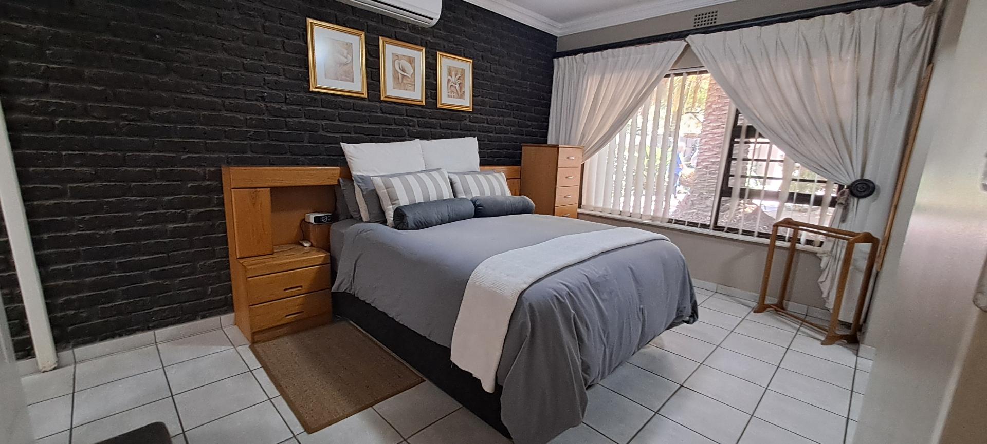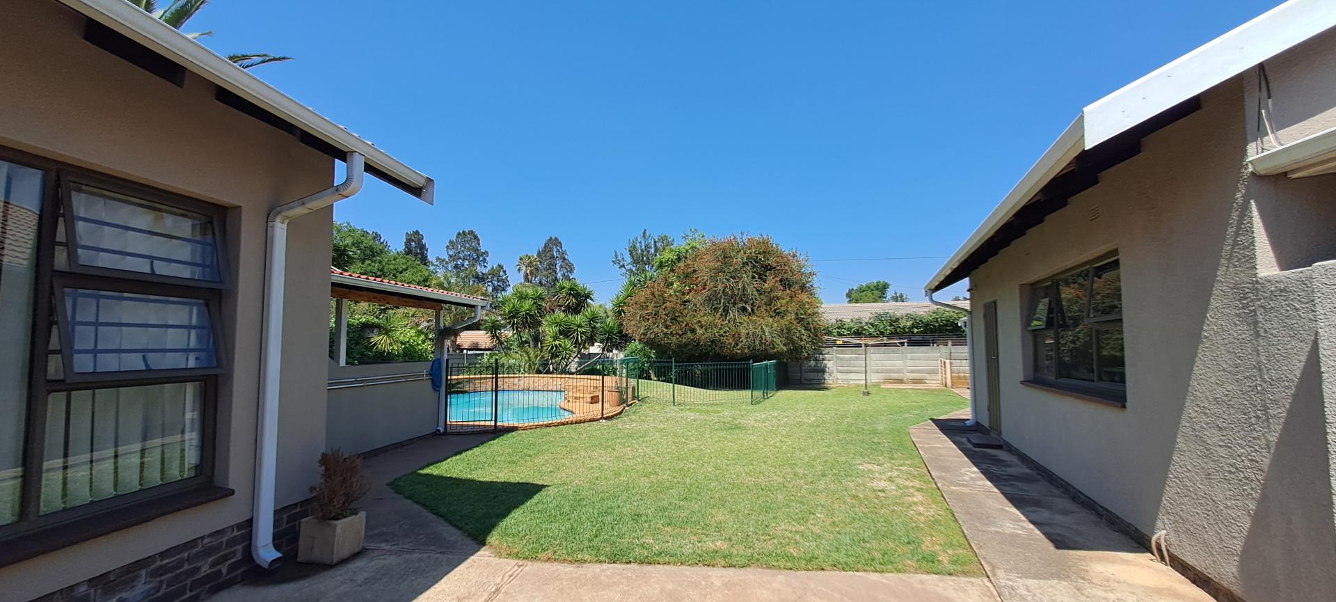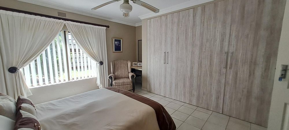 The stunning family room is designed for comfort and entertainment, leading onto the entertainment area with views of the manicured garden and sparkling pool. A solid oak-fitted bar adds a touch of sophistication. The family room opens onto a large covered patio with a built-in Braai, perfect for alfresco dining.