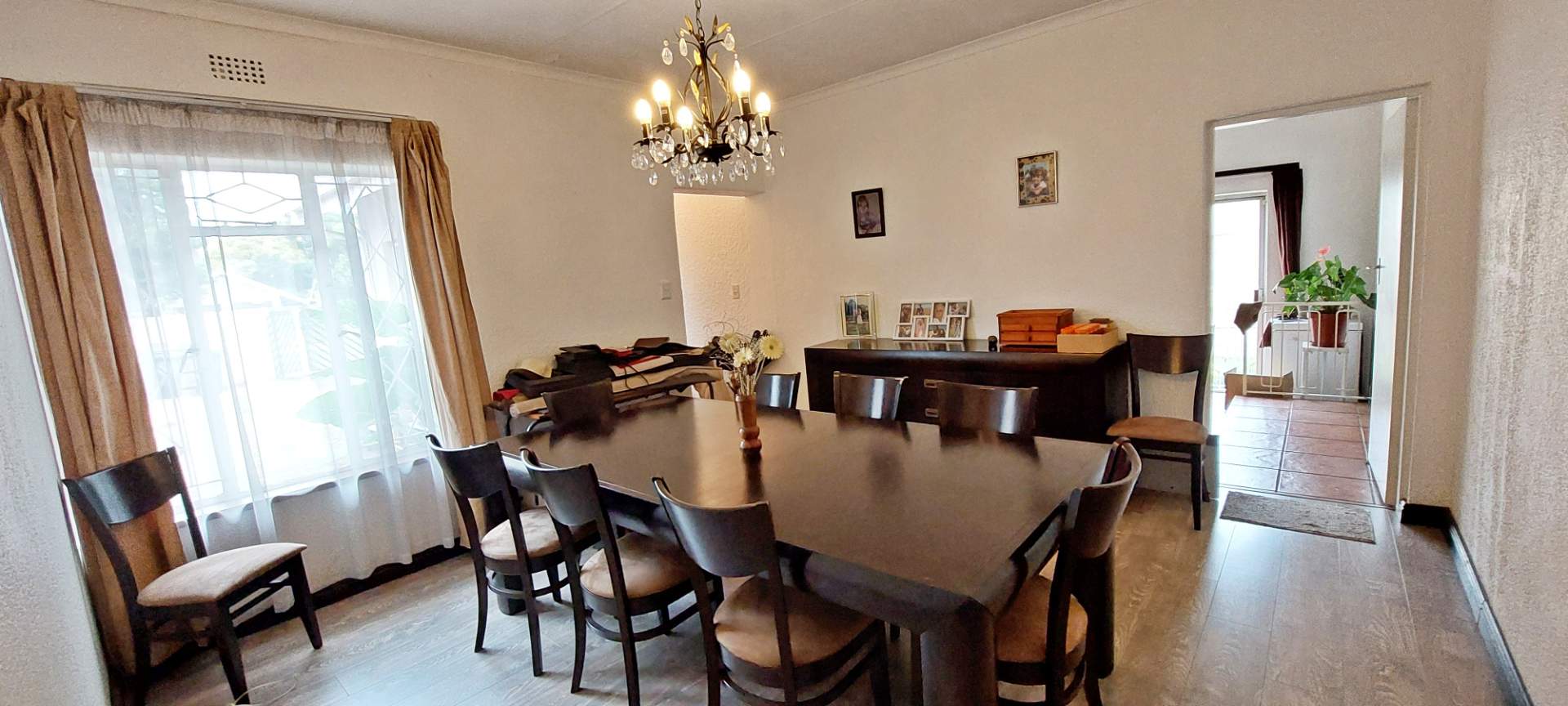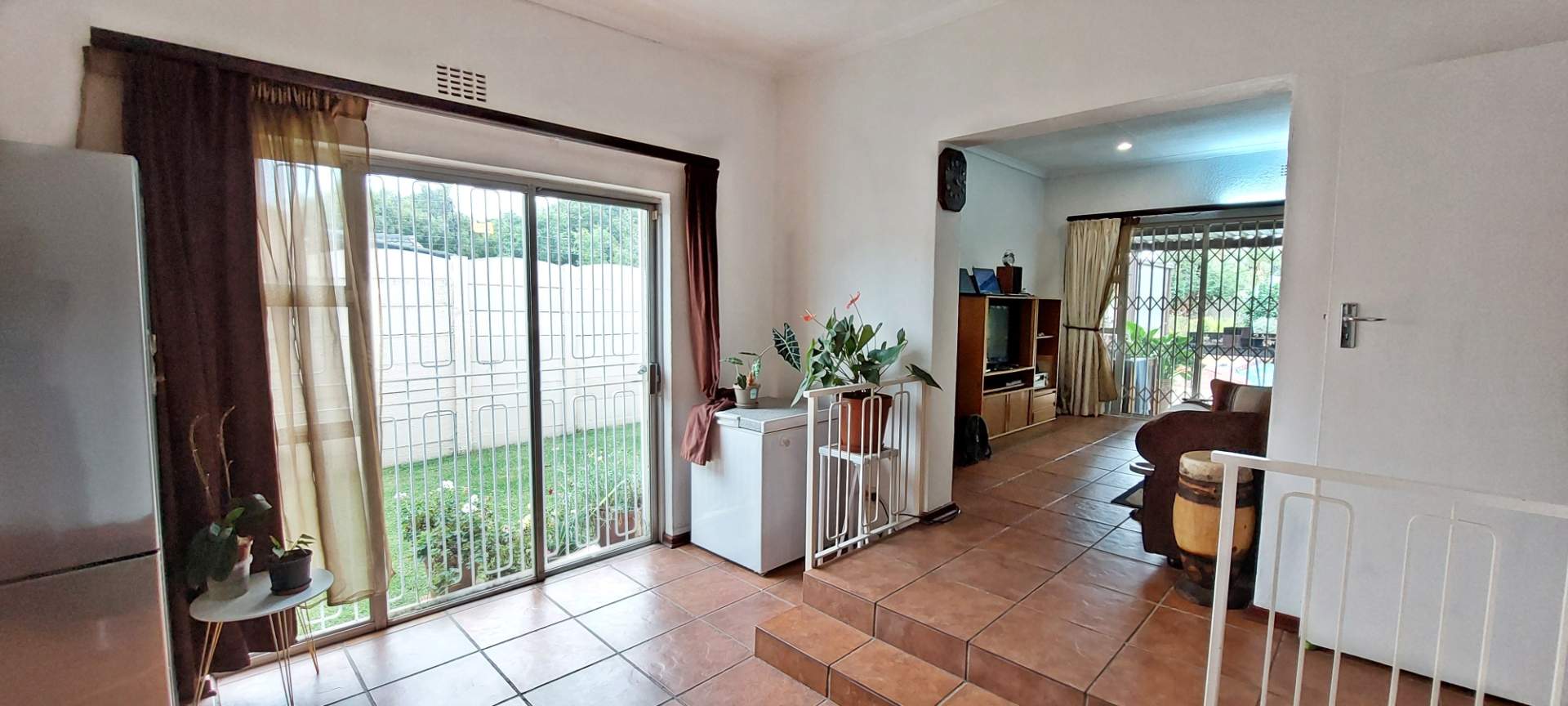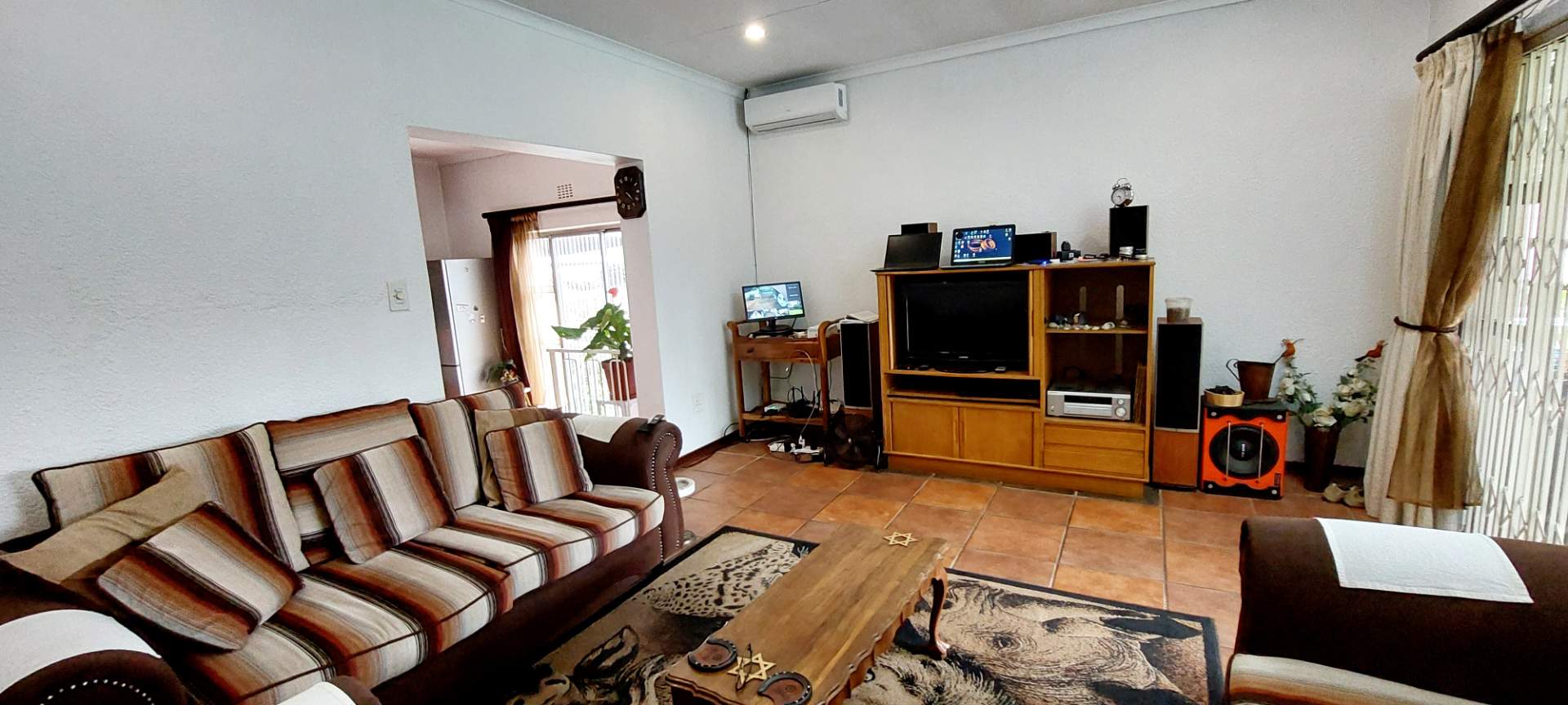 The spacious lounge is a sanctuary with its air conditioning and sliding door opening onto a spacious patio. This outdoor space overlooks a sun-drenched pool and a sprawling backyard, complete with a greenhouse, lush lawn, and an established garden—ideal for relaxation, braais and outdoor activities.