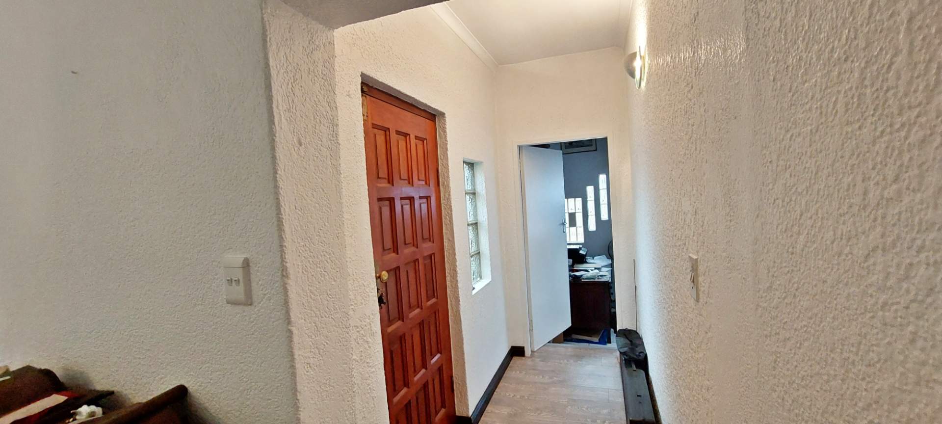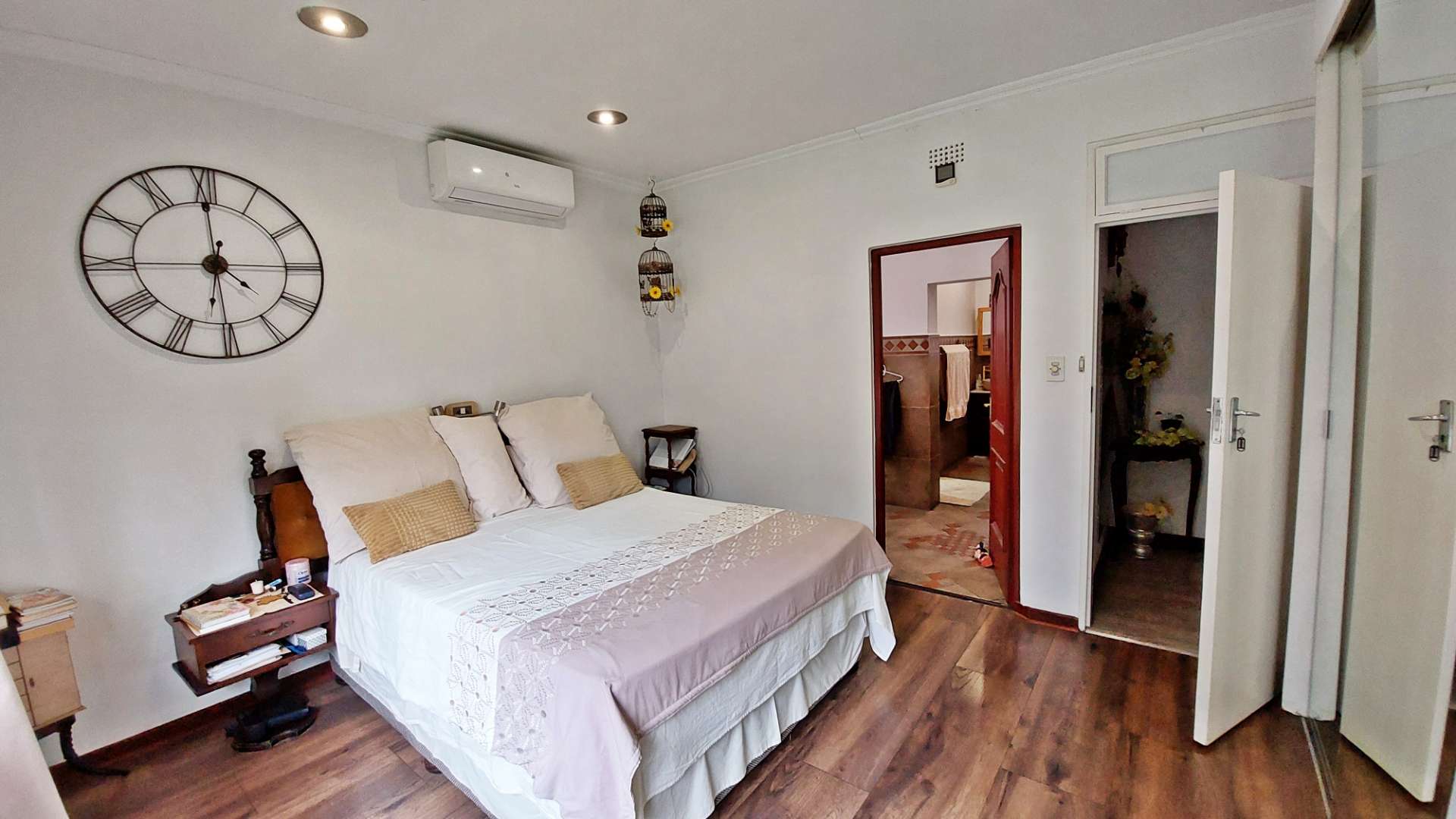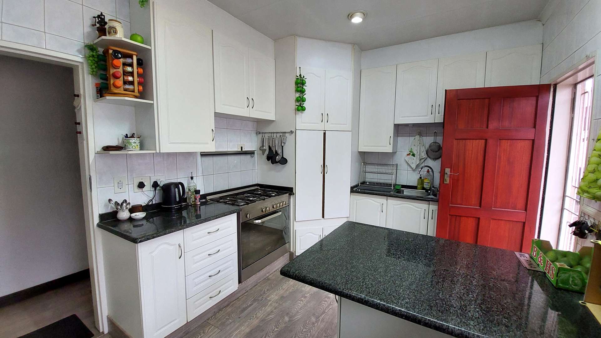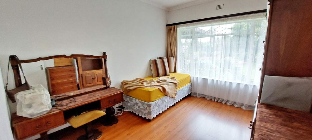 The spacious lounge is a sanctuary with its air conditioning and sliding door opening onto a spacious patio. This outdoor space overlooks a sun-drenched pool and a sprawling backyard, complete with a greenhouse, lush lawn, and an established garden—ideal for relaxation, braais and outdoor activities.