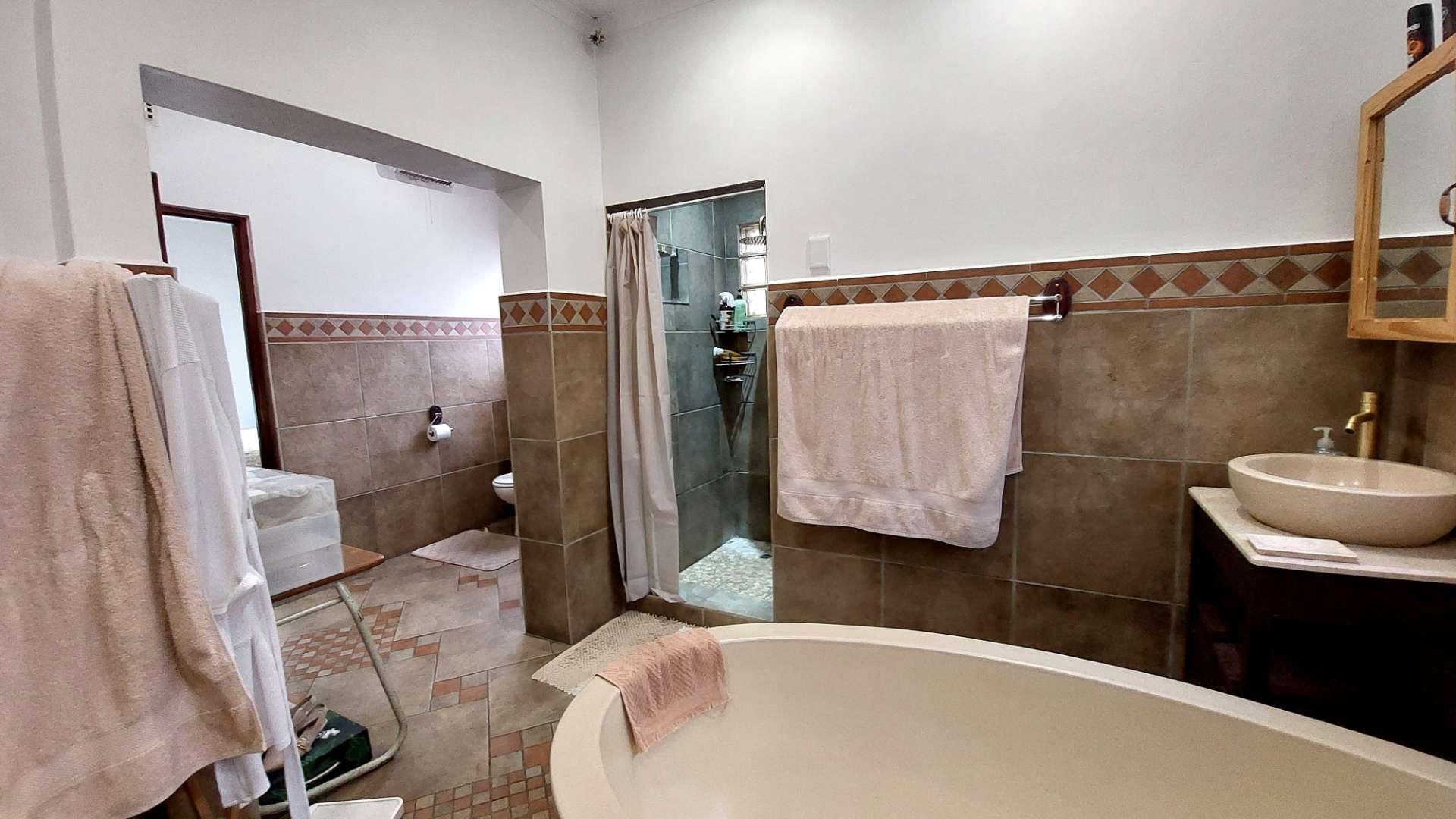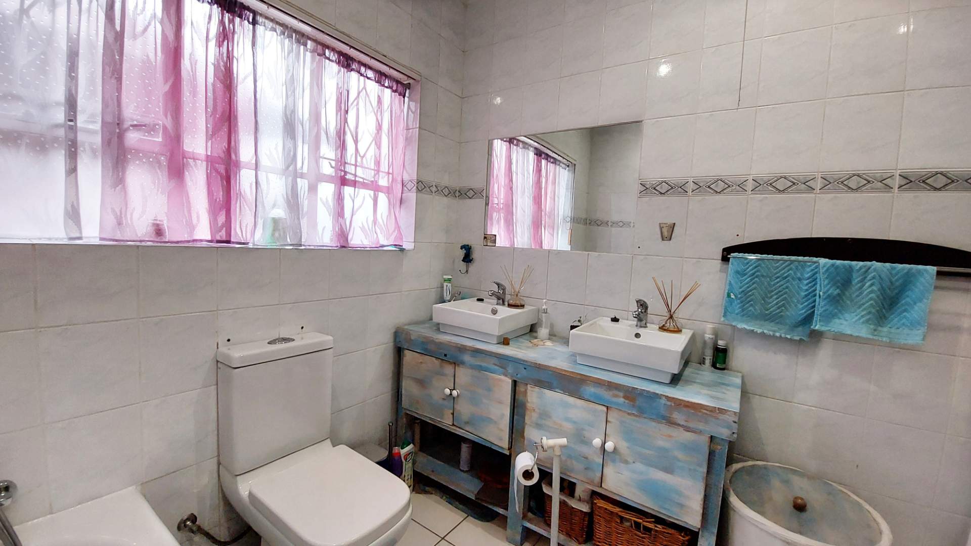 The home boasts 4 spacious bedrooms of which 2 are equipped with air conditioning, 3 with laminated floors while the master suite offers tiled flooring, mirror wardrobe doors, and a luxurious modern en-suite bathroom. This master en-suite is designed with elegance in mind, featuring a toilet, double basins with vanities, a shower, and a soaking tub. The family bathroom is equally impressive, offering a shower, bath, double basin, and toilet.