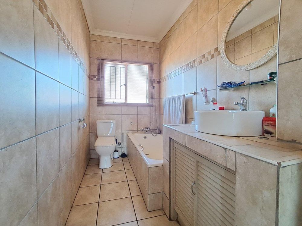 Upstairs, you'll find three spacious bedrooms, each equipped with built-in cupboards. The main and second bedrooms offer direct access to a shared balcony, providing a delightful space for morning coffee or evening relaxation. The hallway features additional laundry cupboards for extra storage. This level includes two well-appointed bathrooms: an en-suite with a bath, shower, basin, and toilet, and a second bathroom fitted with a bath, basin, and toilet.