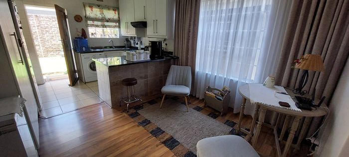 Relax in secure Summerfields Estate living — south-facing corner unit with open-plan flow, manicured garden and thatched lapa for entertaining; two ensuite bedrooms, garage and carport.