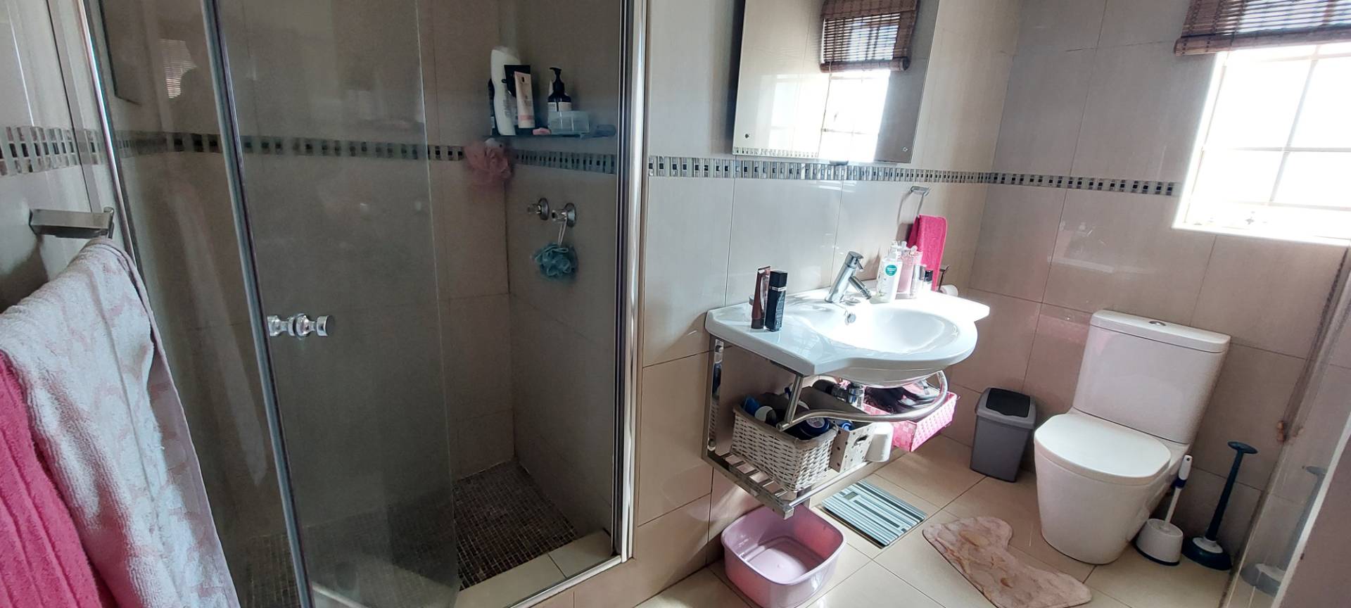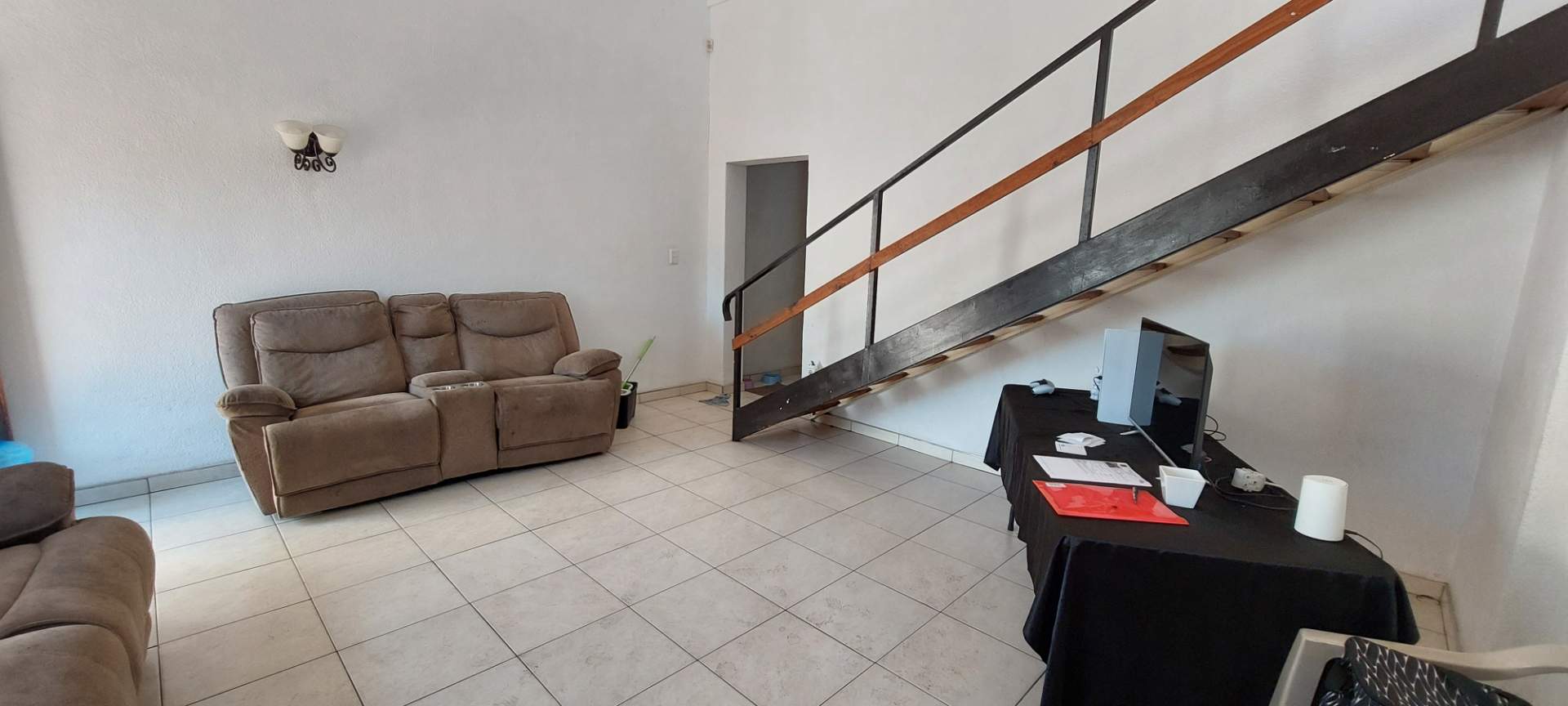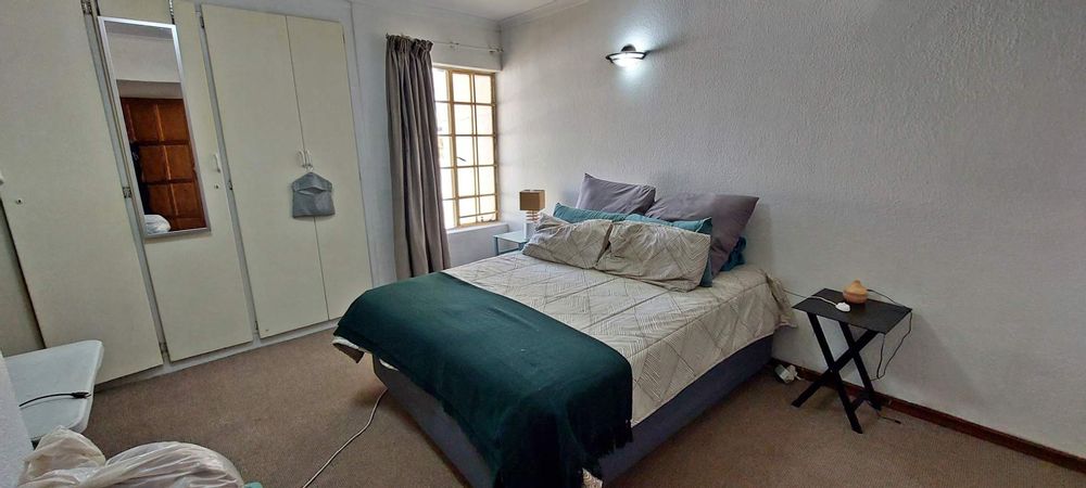 The ground floor features two well-sized bedrooms, both with built-in cupboards, providing ample storage space. Additionally, there is a study, perfect for a home office or quiet retreat. The master bedroom is a sanctuary of its own, complete with blinds, an en-suite bathroom featuring a shower, basin, and toilet, and plenty of space to unwind.