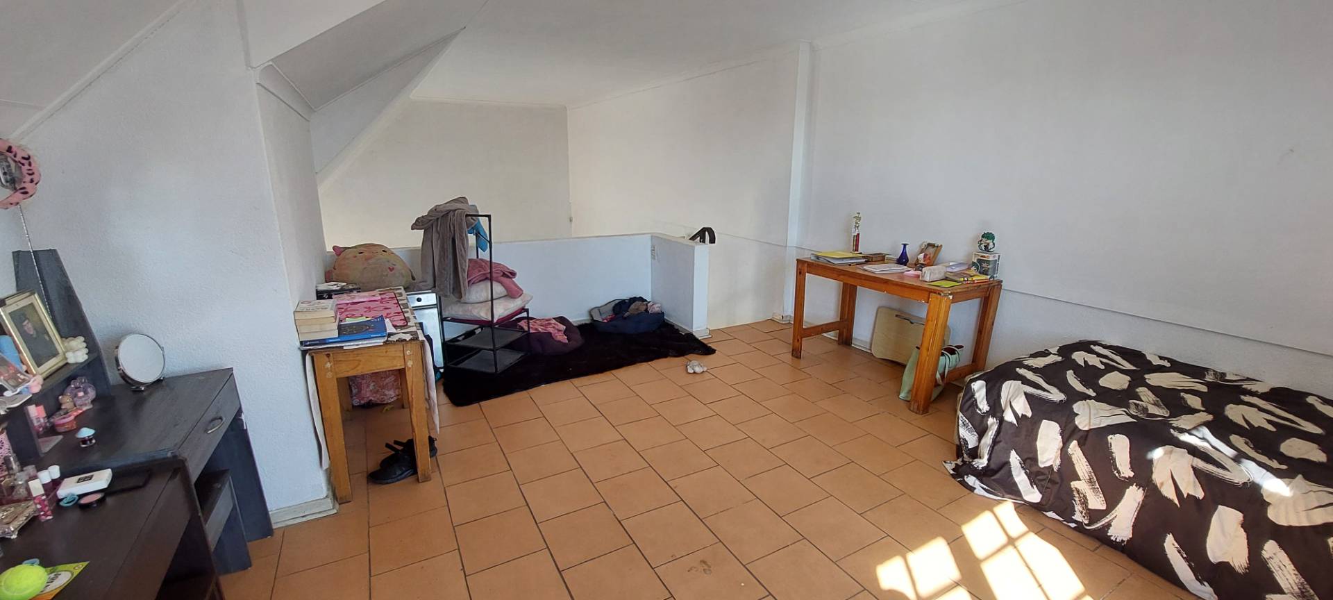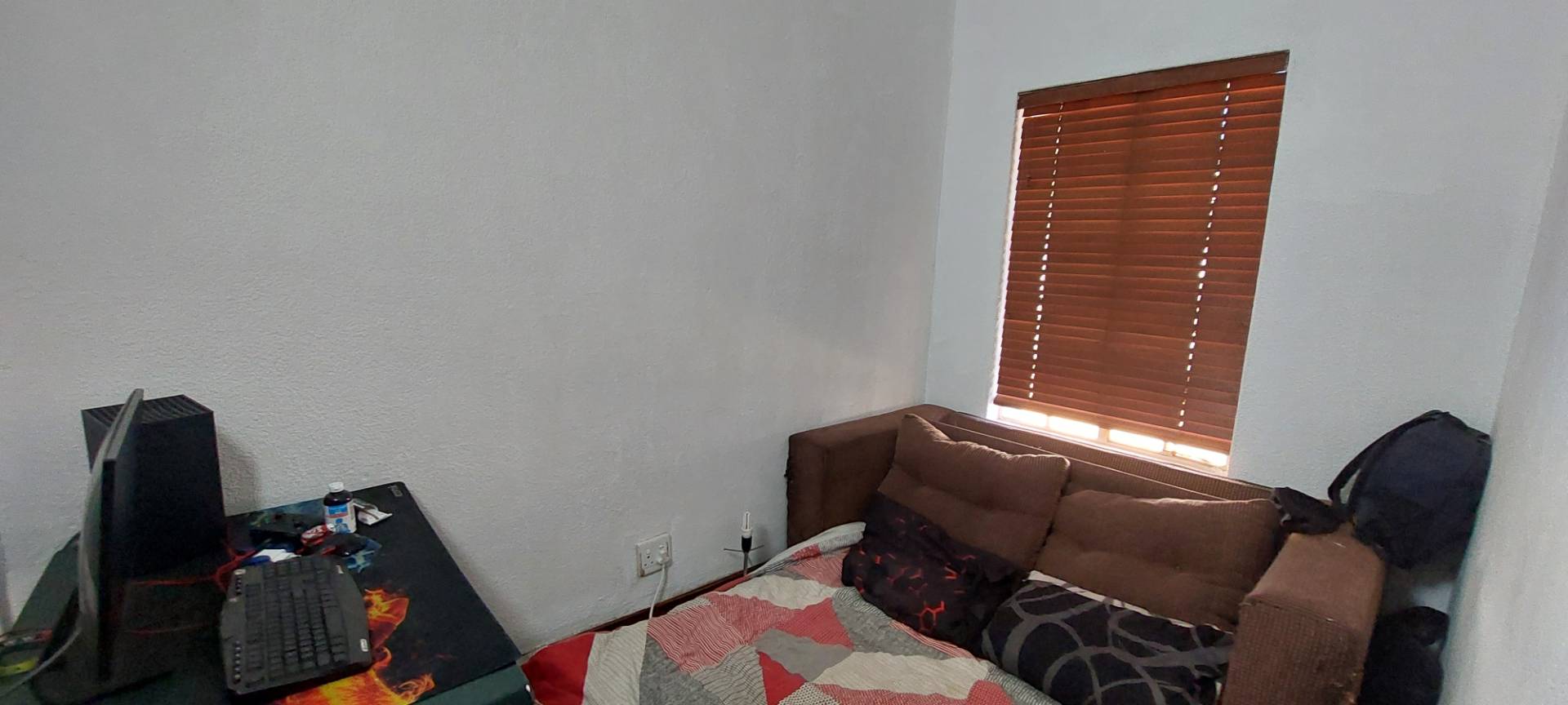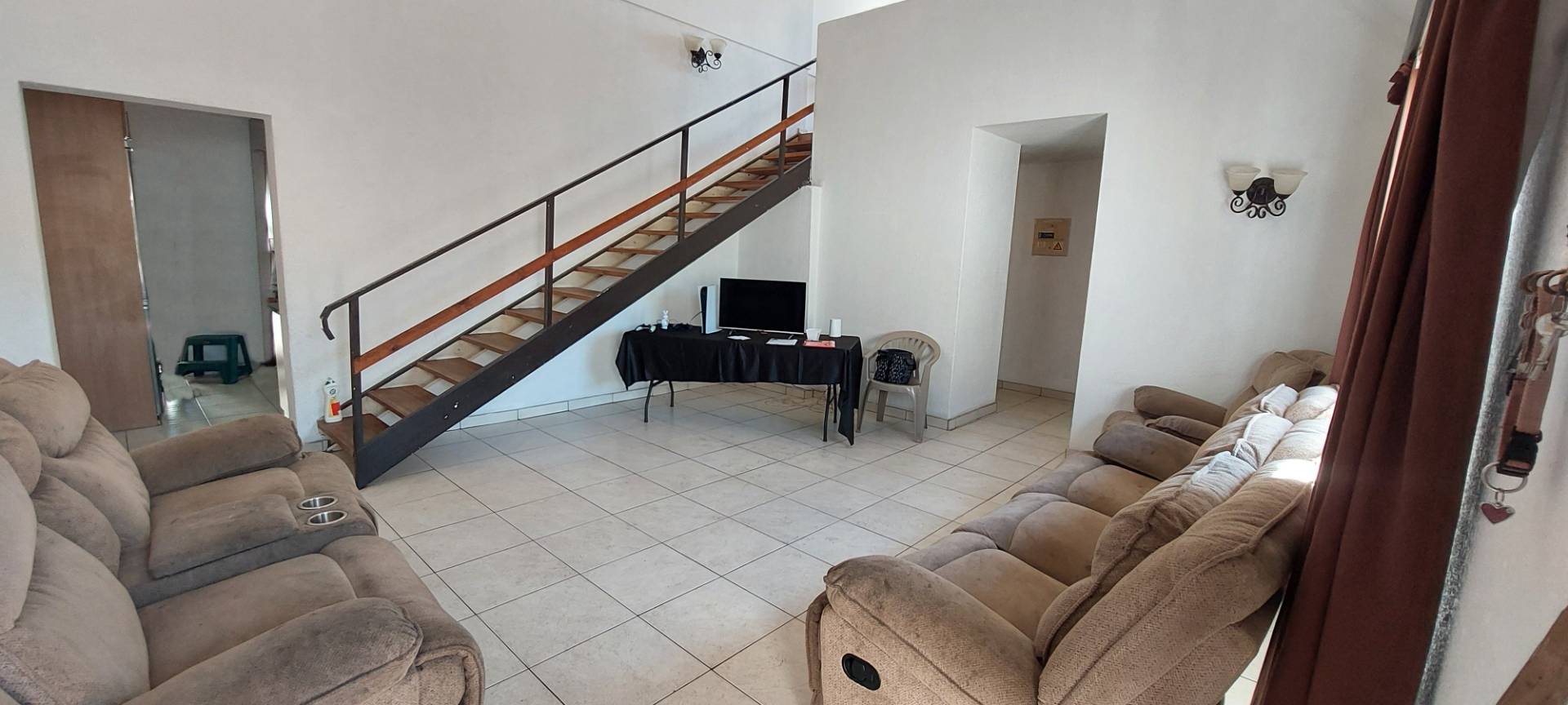The ground floor features two well-sized bedrooms, both with built-in cupboards, providing ample storage space. Additionally, there is a study, perfect for a home office or quiet retreat. The master bedroom is a sanctuary of its own, complete with blinds, an en-suite bathroom featuring a shower, basin, and toilet, and plenty of space to unwind.