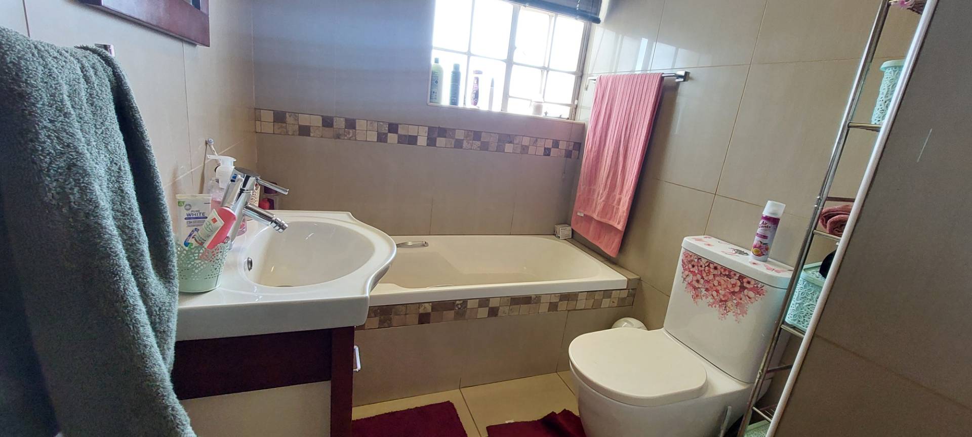 This home boasts two bathrooms for convenience. The family bathroom includes a bath, basin, and toilet, while the en-suite in the master bedroom offers added privacy.