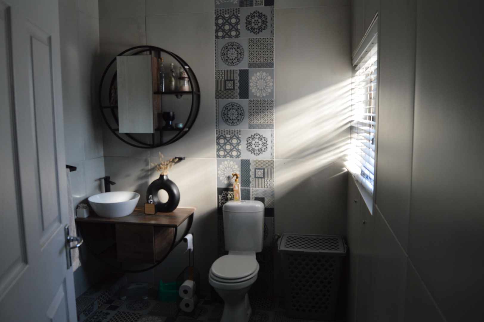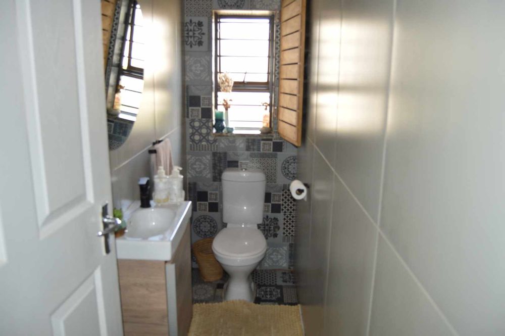 The home boasts a convenient guest toilet and basin, alongside a modern bathroom equipped with a toilet, basin, and shower for your comfort. The heart of the home is the contemporary open-plan kitchen, fitted with a gas stove and electric oven, seamlessly flowing into the dining room and lounges, perfect for entertaining and family gatherings. Laundry room.