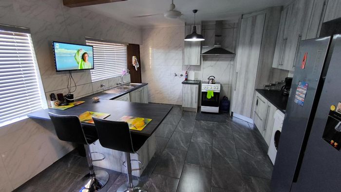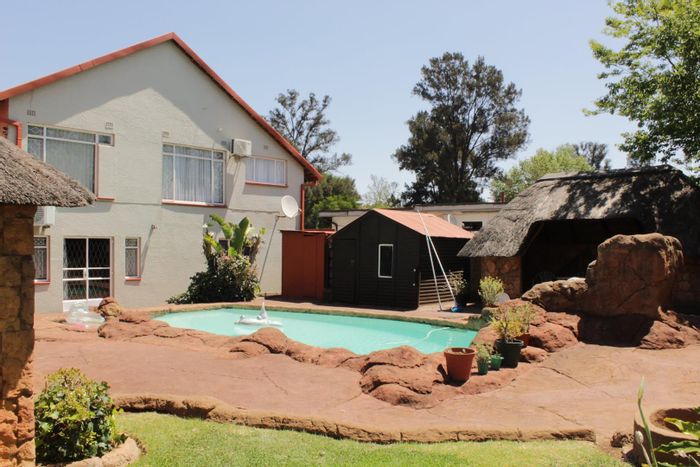 Host unforgettable gatherings in Brackendowns with expansive entertainment spaces, a thatched covered patio with built-in braai and pool, plus a flatlet and four bedrooms, two bathrooms.