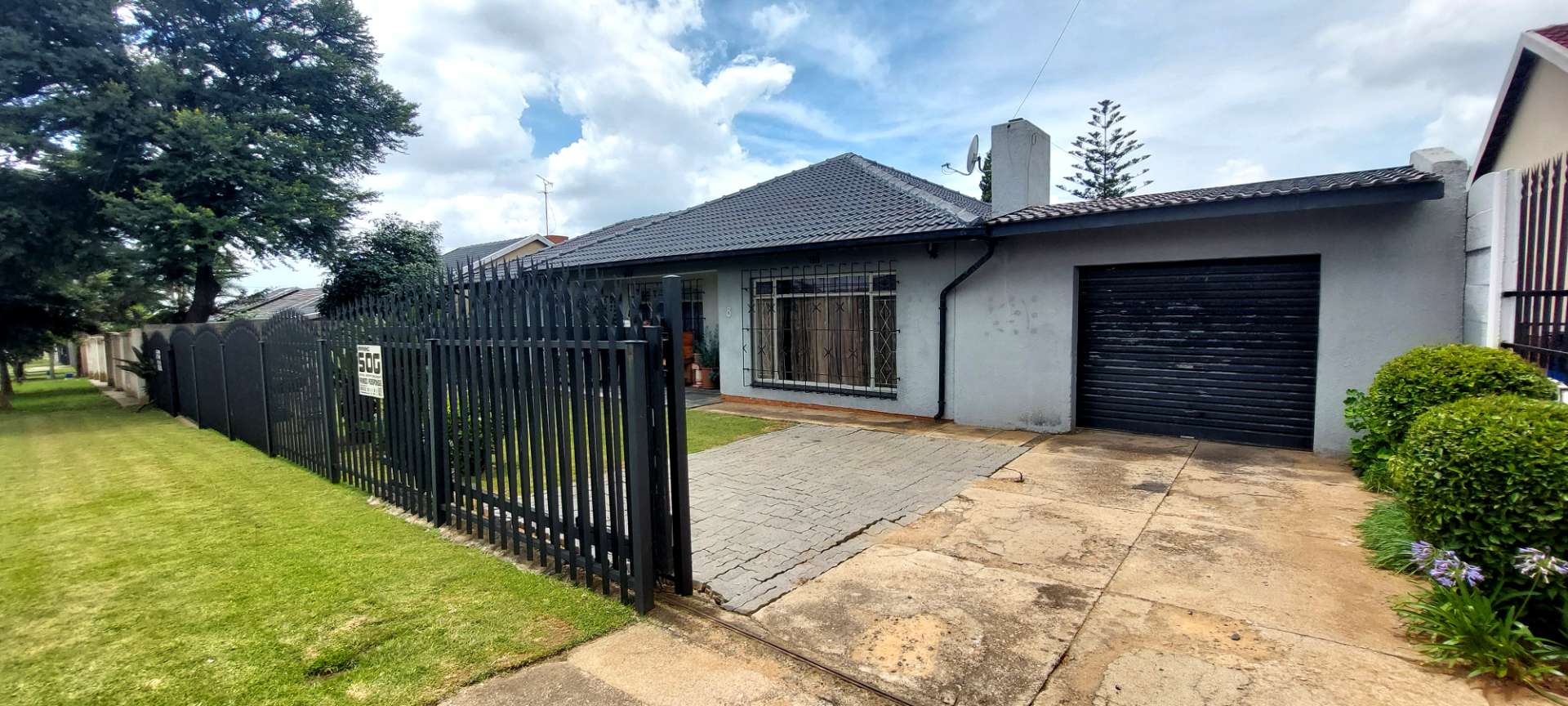 Security and privacy are paramount with a palisade fence and motorized gate enclosing the front yard, offering peace of mind for you and your loved ones.