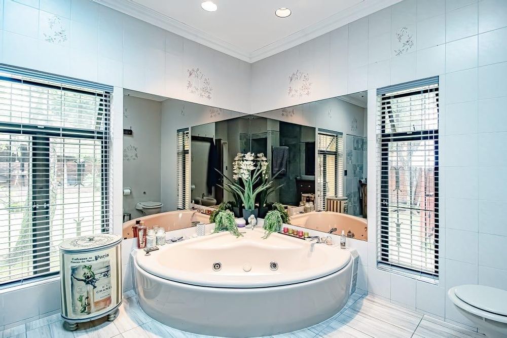 Bedrooms: 4 well-sized bedrooms, including a luxurious main suite with a stylish en-suite bathroom, dressing area, and built-in cupboards. The main bedroom flows onto a covered stoep with built-in braai.