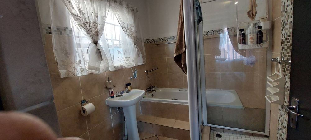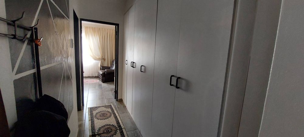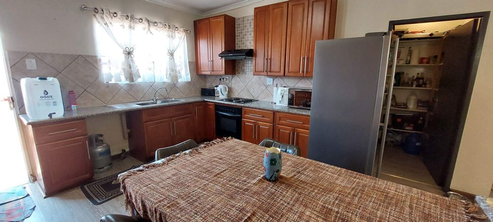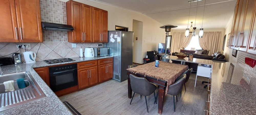 The heart of the home is the open-plan lounge and dining area, seamlessly connected to a modern kitchen designed for the discerning chef. With elegant granite countertops, a breakfast nook, and a walk-in pantry, this kitchen is both functional and aesthetically pleasing. Equipped with an under-counter oven, hob, and extractor fan, meal preparation will be a delight in this stylish space.
