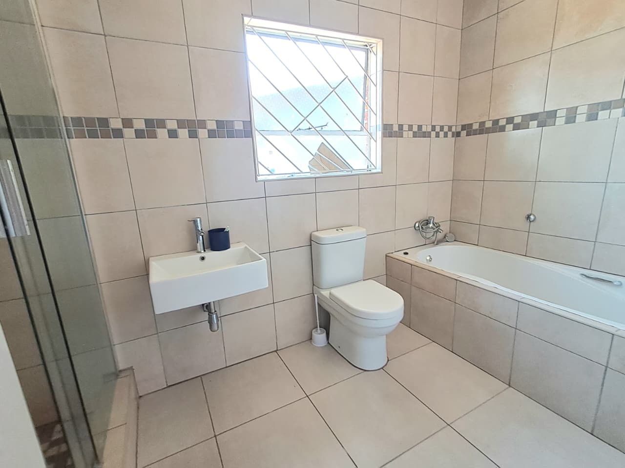 Step into a world of contemporary elegance with three generously sized bedrooms, each featuring built-in cupboards for ample storage. The master suite is your private retreat, complete with a sophisticated en-suite bathroom equipped with a shower, basin, and toilet. A separate full family bathroom offers a bathtub, basin, and toilet, providing convenience for all household members.