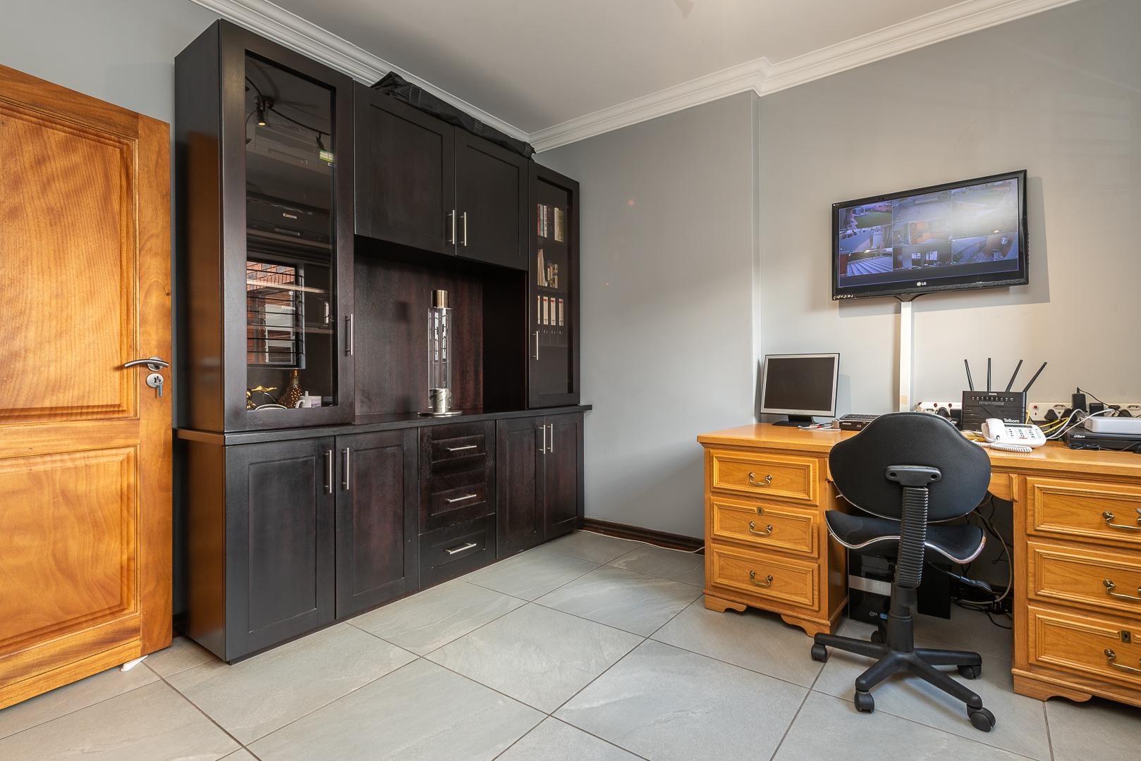 This property is packed with additional features, including double automated garages, two 8 kVA inverter systems, an 8 kWh lithium battery, a 16 kVA generator, 18 solar panels, automatic generator switch-over, nine CCTV cameras, outdoor beams, eight air-conditioning units, an automated irrigation system, a garden shed, two wendy houses, 2 JoJo tanks, an outside toilet with a basin, Pool cover, outside Power outlets and fibre connectivity. Energy efficiency is enhanced by a gas geyser.