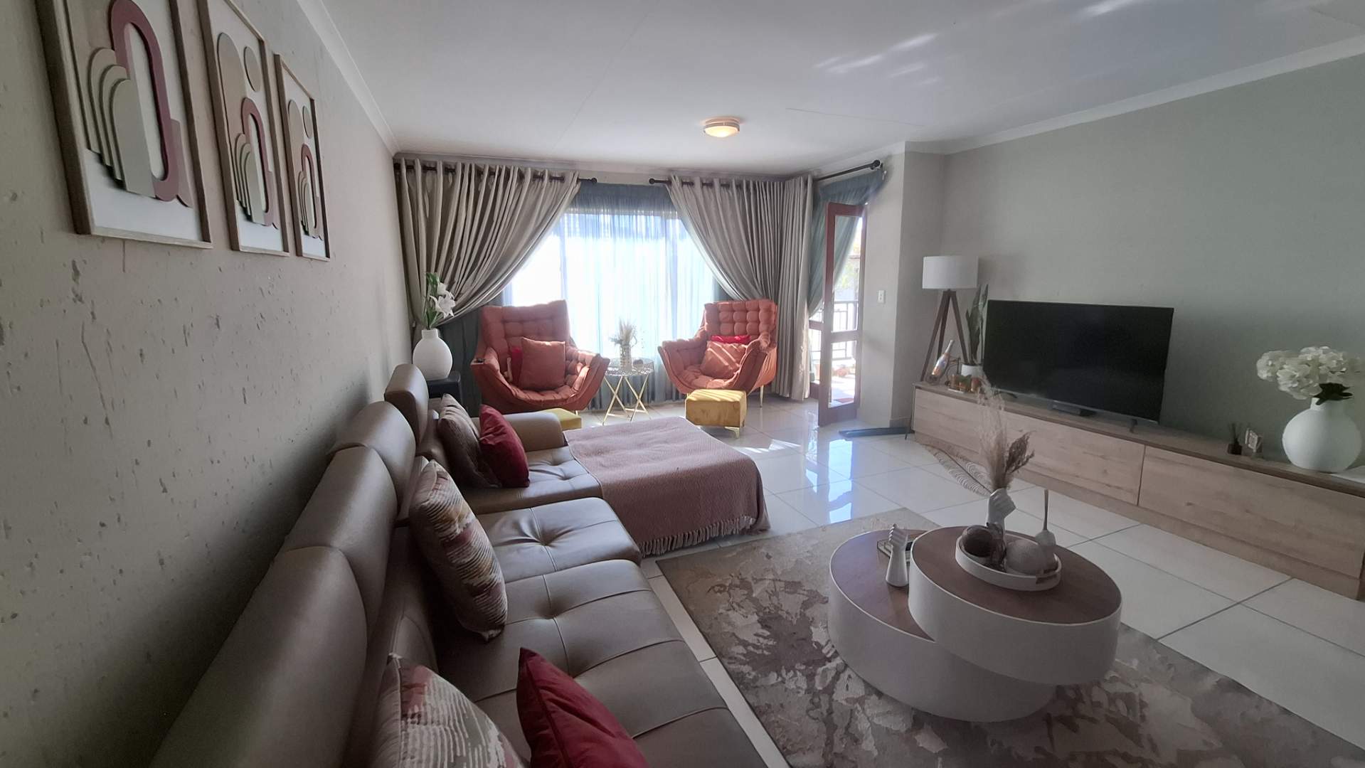 Perfect lock up and go apartment in Meyersdal . Offers tiled lounge with open plan cherrywood kitchen.