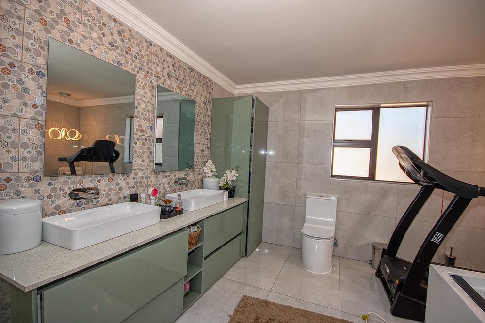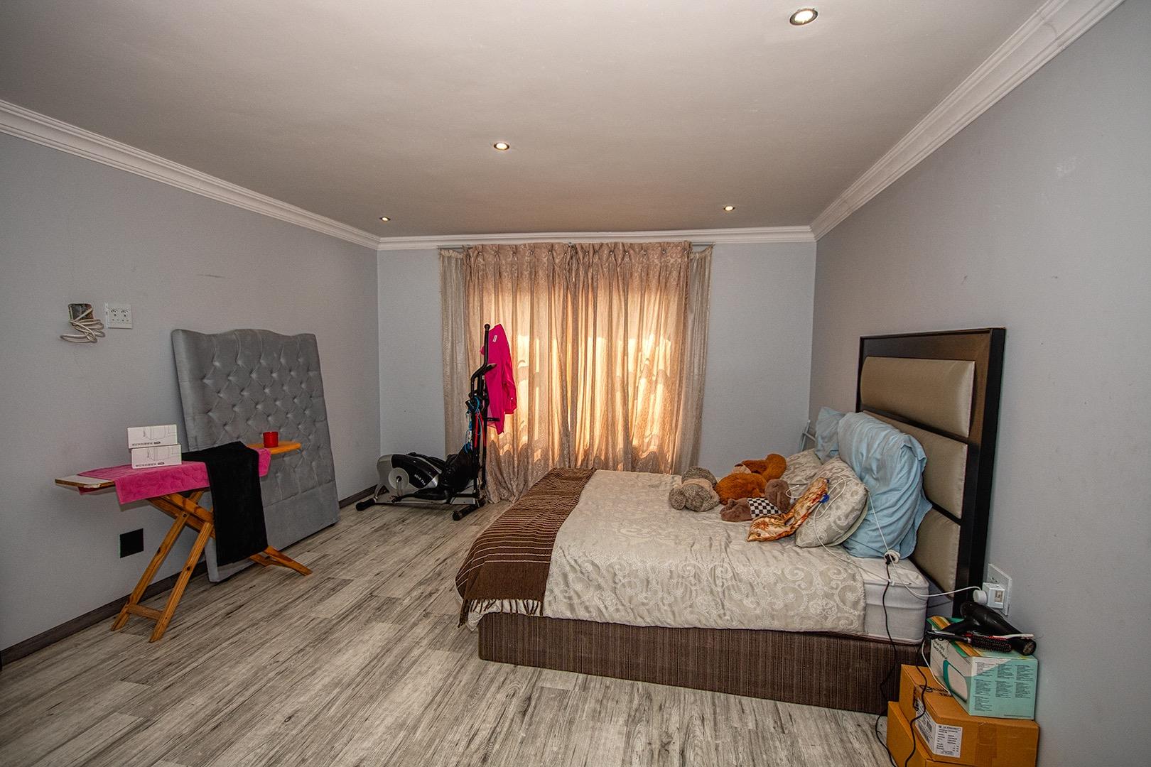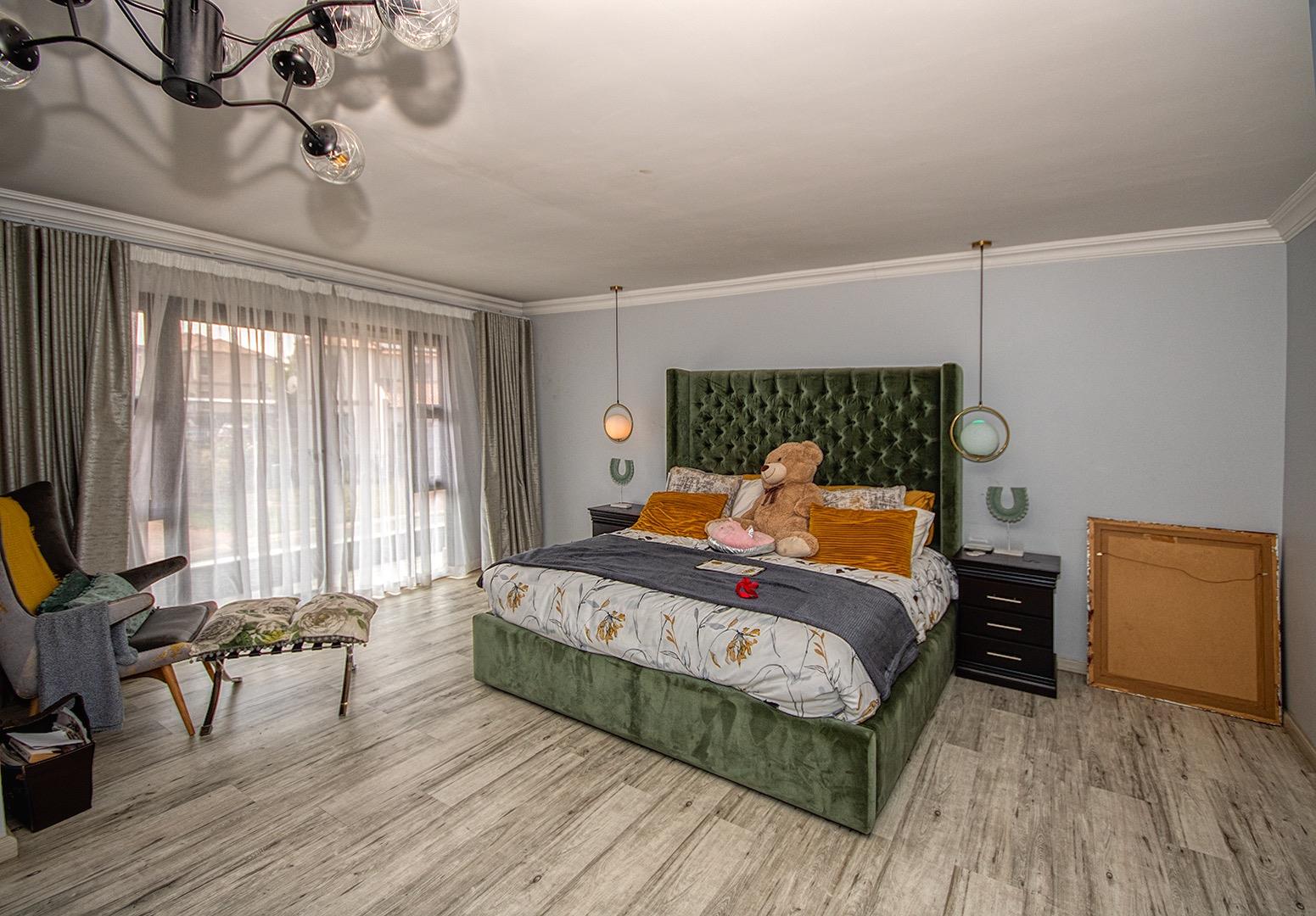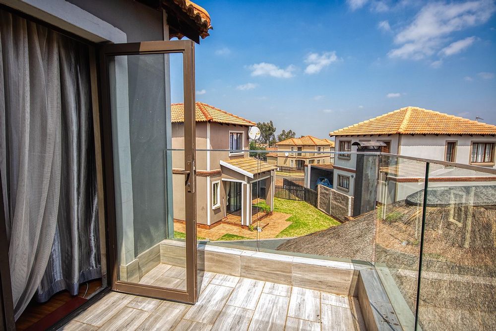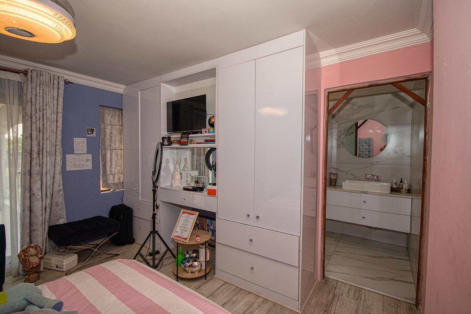This Meyersig property property offers 4 spacious bedrooms all with ensuite bathrooms, full bathrooms with double showers. The main bedroom has both an open walk-in closeted an enclosed area as well, a 2nd lounge/pyjama room, full bathroom with a double shower and a double bath, a balcony, all in the main bedroom. The 2nd bedroom has it own balcony as well. A kitchen fitted with ample cupboards, a downstairs lounge and dinning, a covered outdoor patio. the 1st bedroom is downstairs for granny. An outdoor sitting area with a lapa and a break area, vegetable garden, and many more to see. 24hr security, pet friendly.