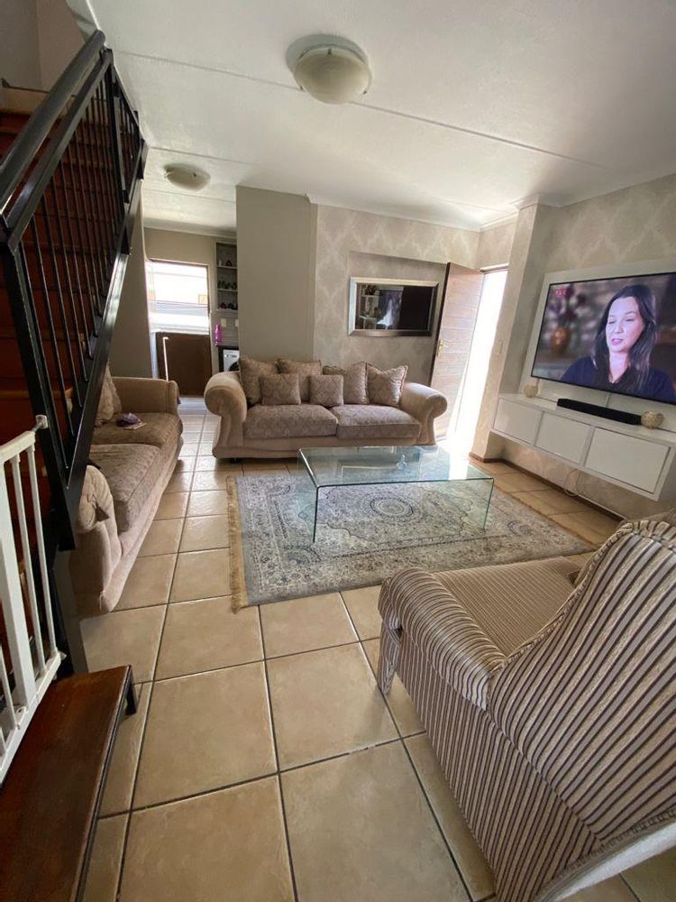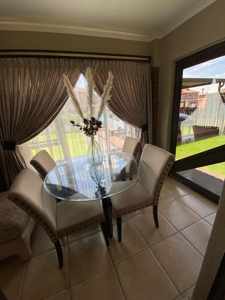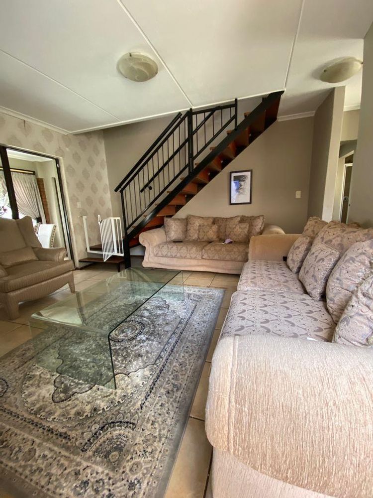 This house offers 3 bedrooms, 1 downstairs, 2 bathrooms, main bedroom ensuite (shower). A kitchen, dining and a lounge. 24hr security, pet friendly and close to the pool.