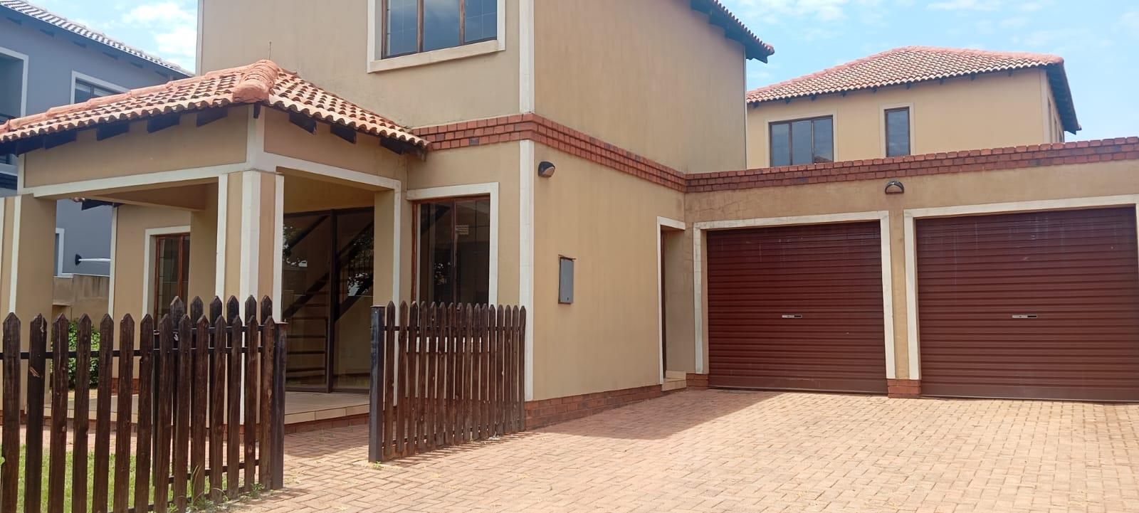 Three bedrooms, two bathrooms, kitchen, open plan kitchen, garden, double garage within the sought-after Meyersig Lifestyle Estate in Alberton, South Africa. The estate boasts excellent kerb appeal with a well-secured gated entrance, complete with a guardhouse, electric fencing, and robust perimeter walls, ensuring 24-hour security and peace of mind for residents.