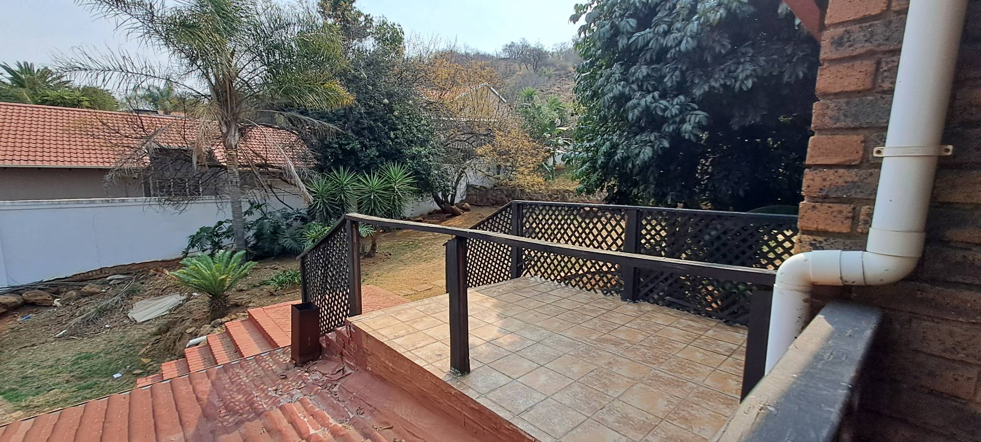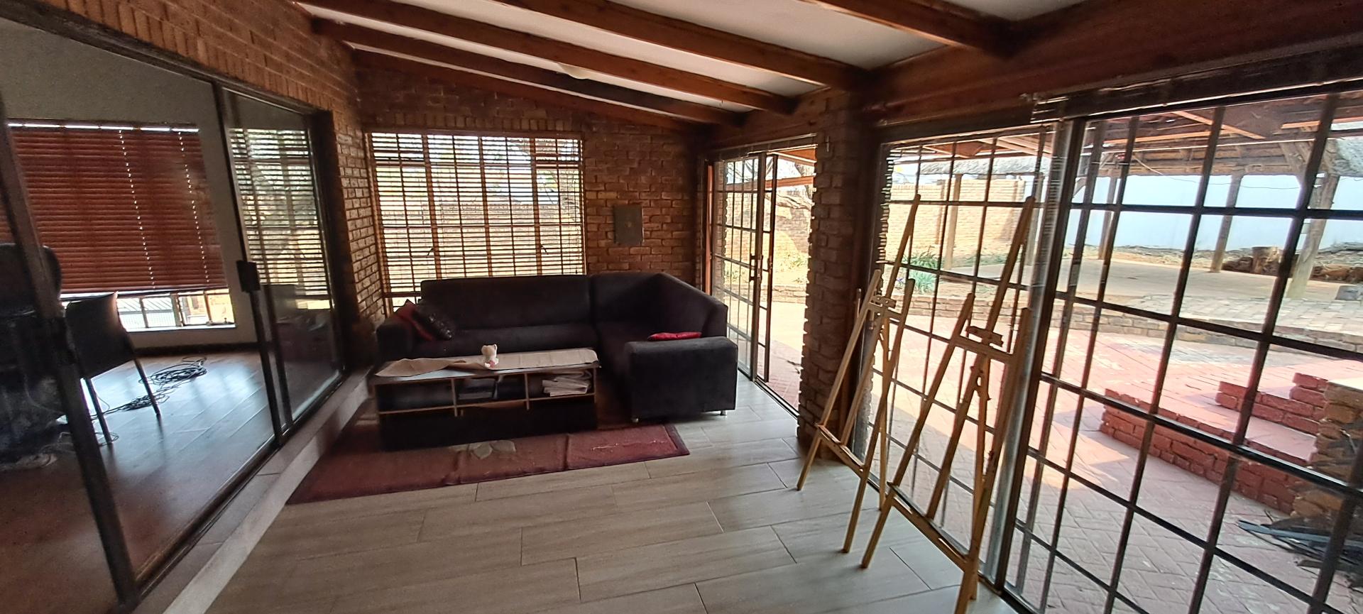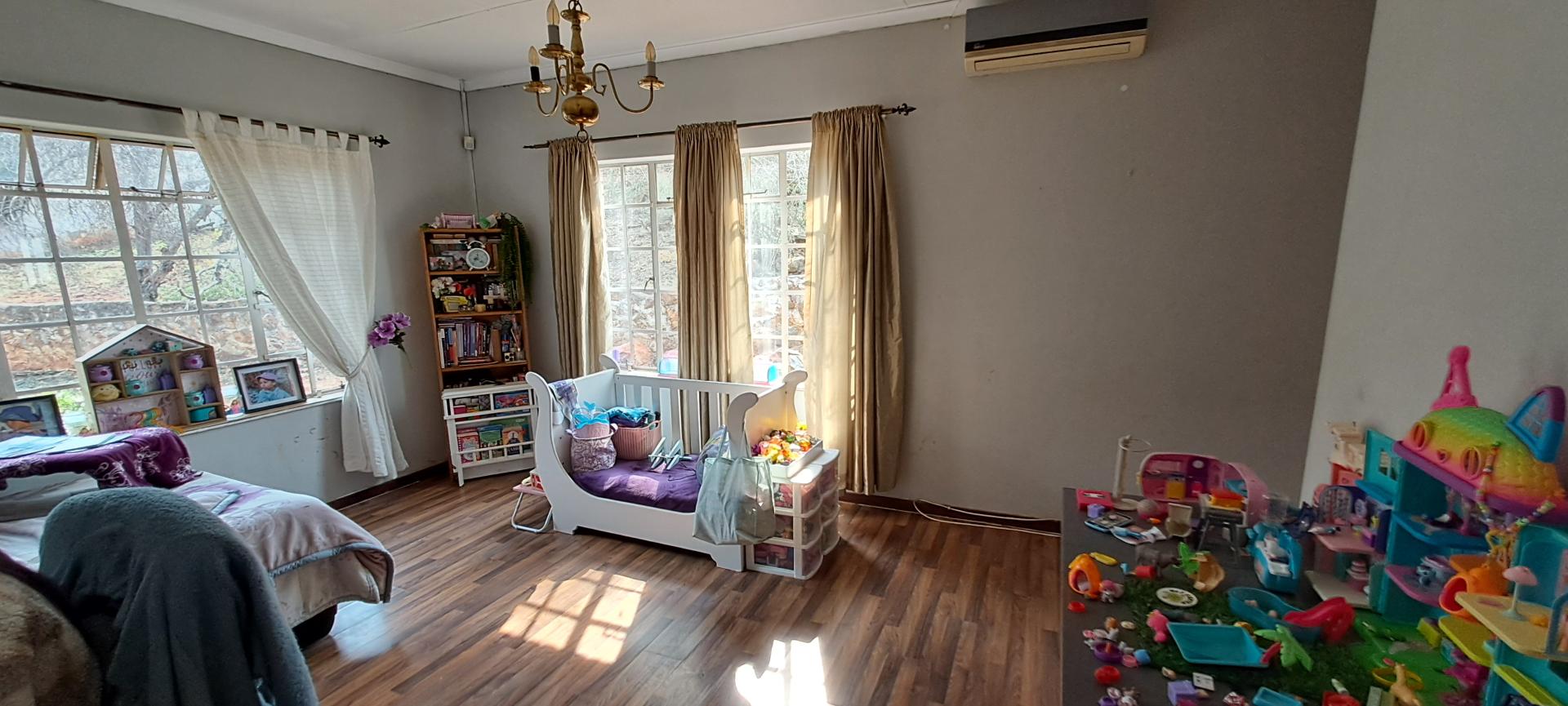 Outdoor living is a delight with a lapa and braai area, perfect for entertaining guests. Additional amenities include a Wendy house for staff accommodation, complete with an outside basin and toilet.