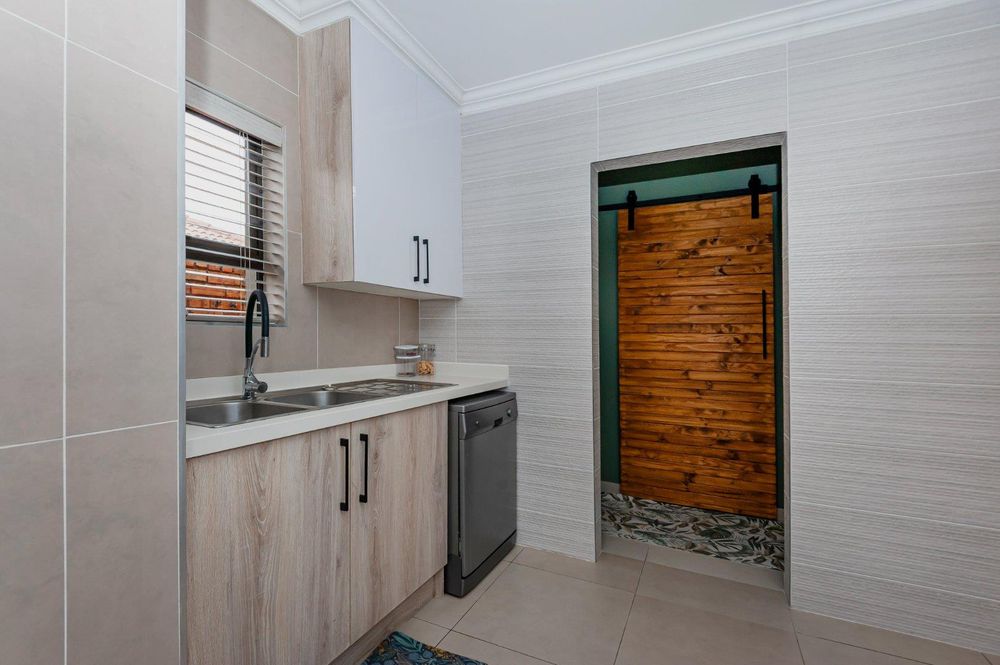 Outside, enjoy a beautiful entertainment area complete with a built-in braai, perfect for hosting gatherings with friends and family. The private, pet-friendly garden offers a tranquil setting and features a sparkling swimming pool, creating an oasis for relaxation and fun.