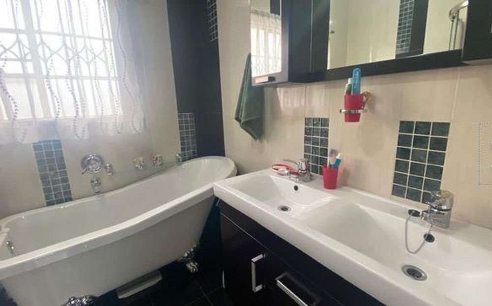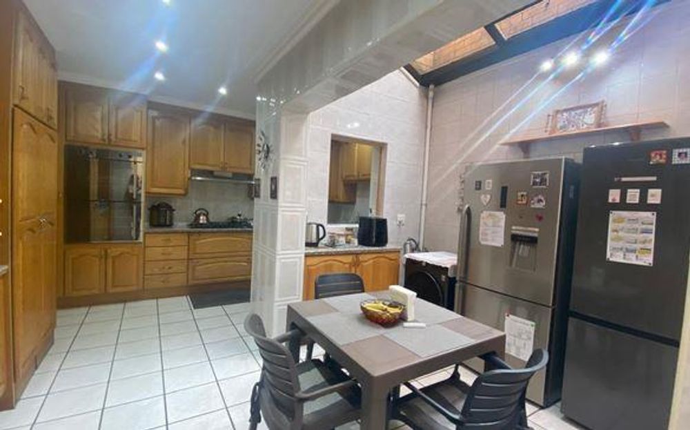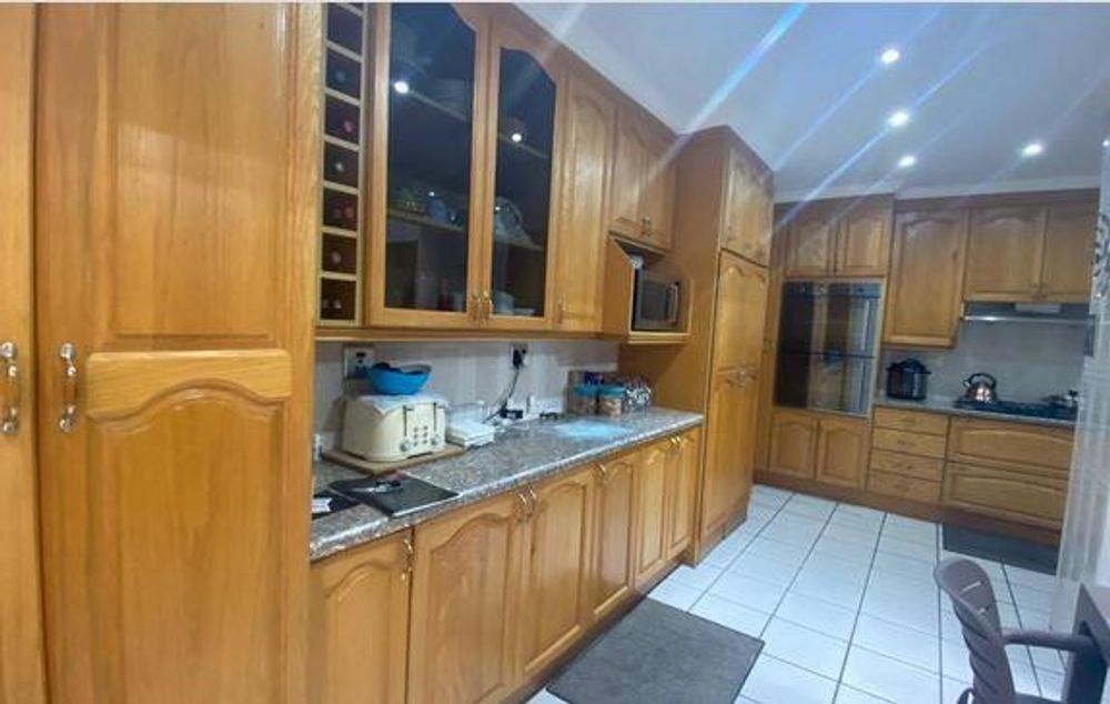 Step into the heart of the home, the huge kitchen, which offers an abundance of space and top-notch amenities. With room for a double door fridge, a gas stove, eye-level oven, granite countertops, and ample cupboards, this kitchen is a chef's dream. An extractor fan ensures a fresh cooking environment, making meal preparation a delight.