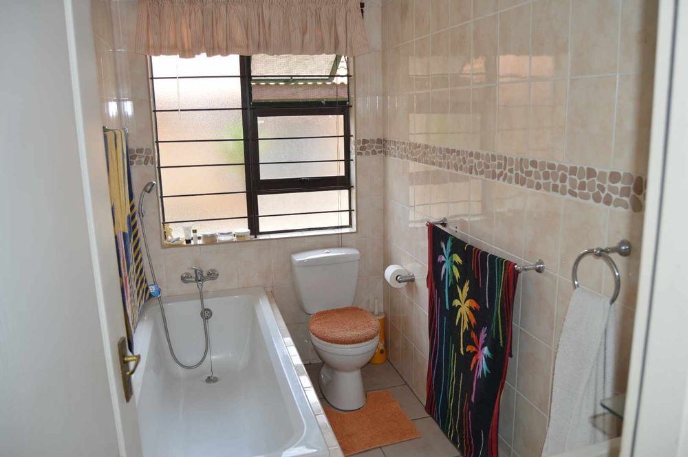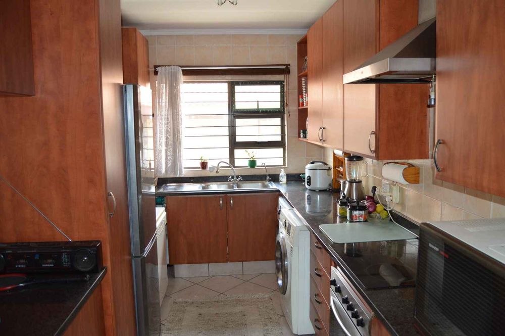 This townhouse features three spacious bedrooms, each equipped with built-in cupboards, offering ample storage space. The master bedroom boasts an en-suite bathroom for added convenience, while a second well-appointed bathroom serves the other bedrooms.