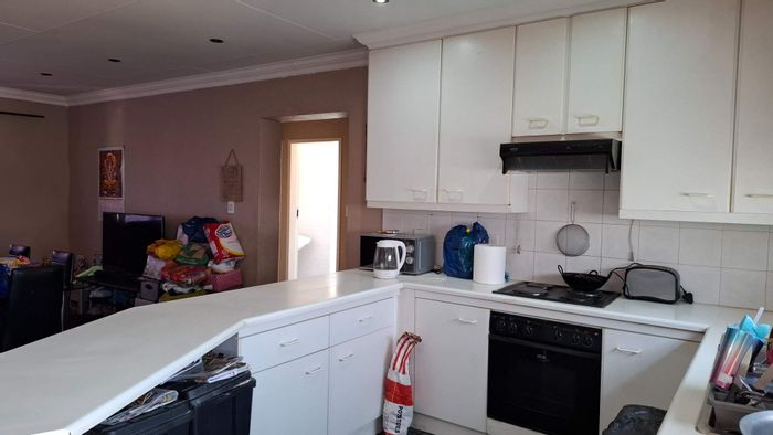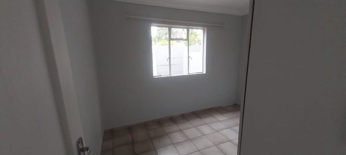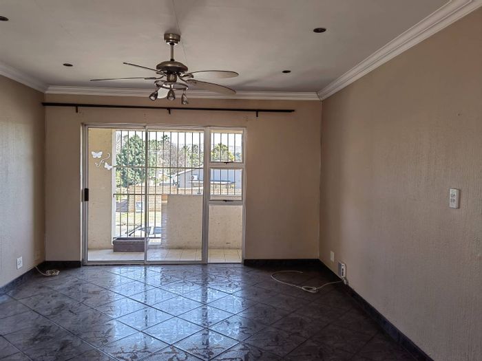 Bright upstairs unit in a central, family-friendly area close to schools — open-plan kitchen, secure balcony overlooking communal pool and lapa. Two bedrooms, one bath; covered plus open parking.