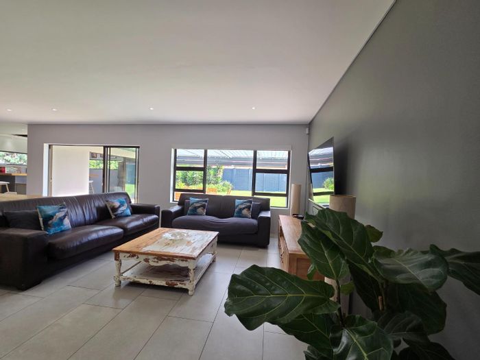 Entertain effortlessly in Mulbarton’s leafy suburb with a private outdoor paradise — pool, lapa, jacuzzi, bar and large garden with jungle gym. Five beds, four baths, double garage.