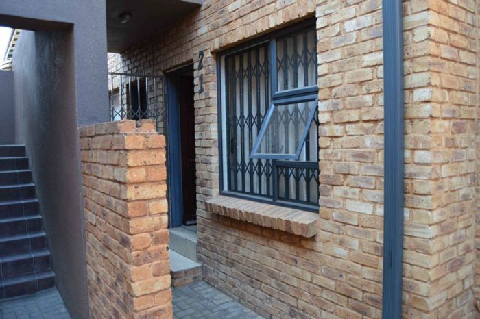 Secure face-brick simplex in sought-after New Market Park, offering open-plan kitchen to lounge/dining, enclosed patio overlooking private garden — three bedrooms, one bath and double garage.